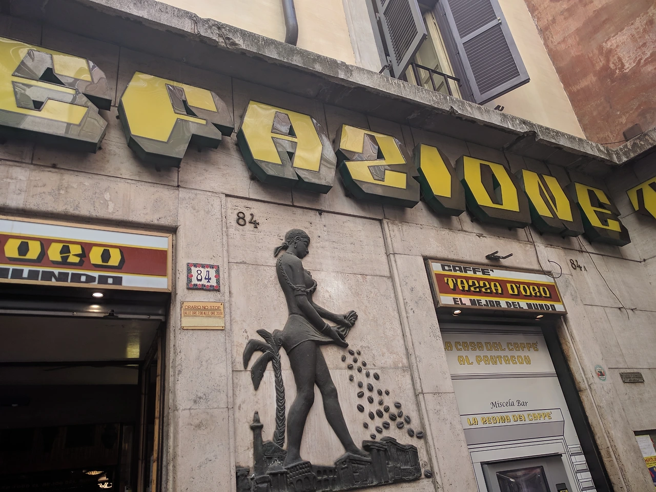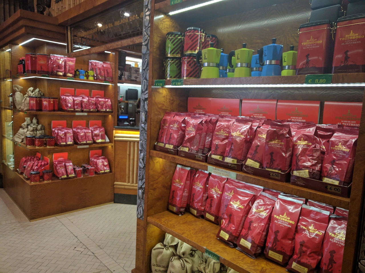 사진 1~5번 판테온 신전, 6~8번 타짜도르 커피. 사진=딱정벌레 판테온에 가면 근처에 꼭 들를 곳이 있다. 바로 타짜도르 커피. 지금은 국내에도 매장이 몇 개 생겼는데 그때는 없었다. 판테온 신전 근처에 있어서 원두도 좀 사고 커피도 좀 마셔야겠다고 생각했다. 돌아보면 이탈리아는 살 게 많다. 영국, 프랑스, 이탈리아에서 주로 쇼핑했는데- 피렌체는 가죽공방도 있고, 로마만 해도 커피에 먹을 게 많으니. 티라미수 같은 건 못 사겠지만. 판테온 인파를 헤치고 나와 타짜도르에 가서 커피를 샀다. 에스프레소는 아쉽게도 못 마시고 원두 간 것만 샀다. 내 것도, 선물용도. 가족과 친척에게 줬는데 반응이 좋았다.