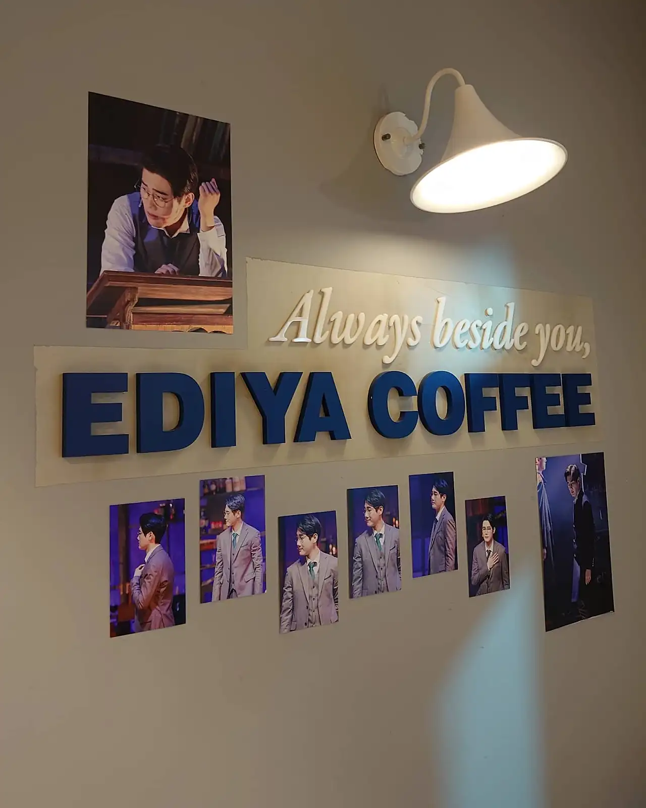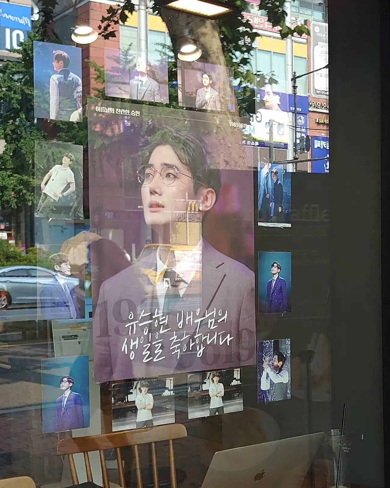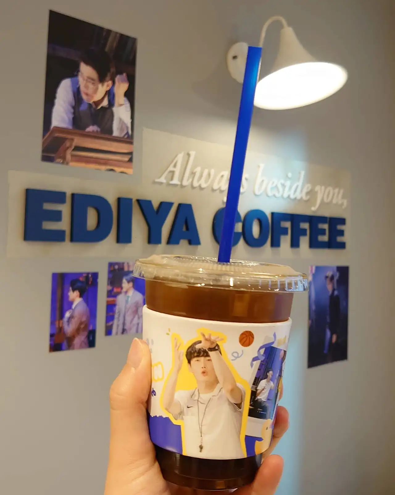 그렇잖아도 이번 달에는 유 배우 생일이 있어서 대학로 카페들이 유 배우 생일 기념관 마냥 장식됐다. '대학로 슈스스'라고도 하던데- 지하철역 광고는 기본이고 대세남 느낌. 저저번 주말, 저번 주말에 성지 순례하는 것 마냥 카페를 찾아가서 사진도 찍고, 음료도 사 마시고, 카드와 홀더도 받았다. 칙칙한 일상에 소소한 재미. 이제 기념관(?)은 거의 끝나고 이디야 커피만 30일까지 저렇게 운영한다. 1인 빙수가 나왔다고 해서 그거 먹을까 하다가 요즘 식단 조절 중이라 그냥 아메리카노 마셨다.