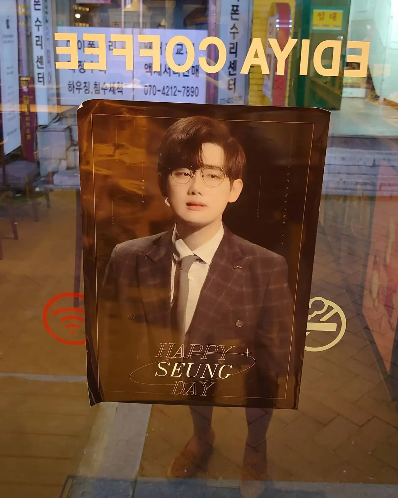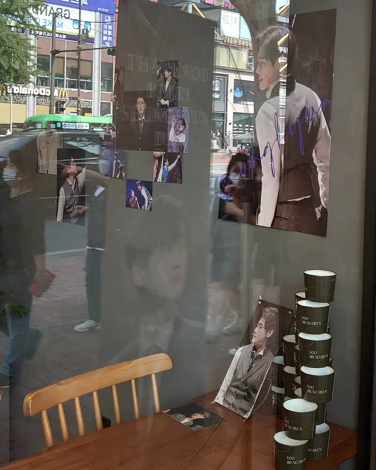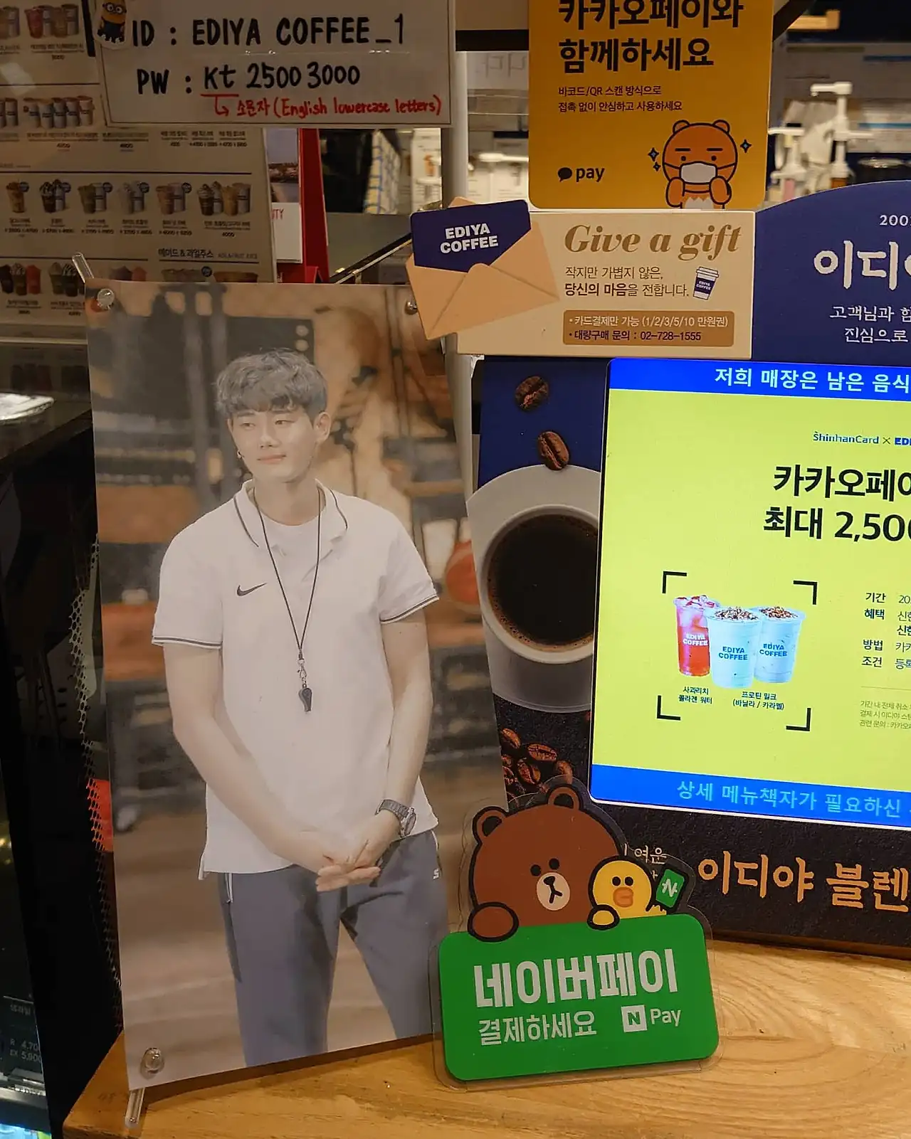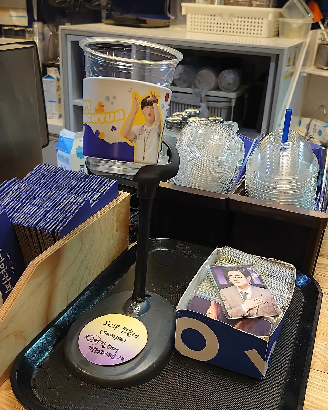 그렇잖아도 이번 달에는 유 배우 생일이 있어서 대학로 카페들이 유 배우 생일 기념관 마냥 장식됐다. '대학로 슈스스'라고도 하던데- 지하철역 광고는 기본이고 대세남 느낌. 저저번 주말, 저번 주말에 성지 순례하는 것 마냥 카페를 찾아가서 사진도 찍고, 음료도 사 마시고, 카드와 홀더도 받았다. 칙칙한 일상에 소소한 재미. 이제 기념관(?)은 거의 끝나고 이디야 커피만 30일까지 저렇게 운영한다. 1인 빙수가 나왔다고 해서 그거 먹을까 하다가 요즘 식단 조절 중이라 그냥 아메리카노 마셨다.