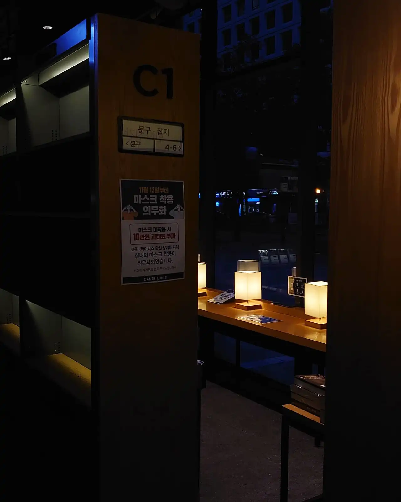 반디앤루니스 여의도 신영증권 매장은 자주 가다가 지난겨울 이후 발길이 뜸했다. 돌이켜보니 그 매장에 자주 가도 정작 책은 많이 사지 않았던 것 같다. 전자책을 주로 사고, 종이책을 사도 교보문고나 알라딘을 더 자주 이용하니까. 두 곳 다 회원으로 가입돼 있고 마일리지가 제법 쌓여있는 까닭도 있다. 정확히 표현하면 반디앤루니스를 자주 가기보다 그 옆에 있는 아띠제를 더 자주 갔던 것 같다. 반디앤루니스 신영증권점도 출입을 통제하고 영업 종료 안내문을 앞에 붙였으며 매장 내 불을 거의 끄는데 가끔 스탠드 불을 켤 때가 있다.