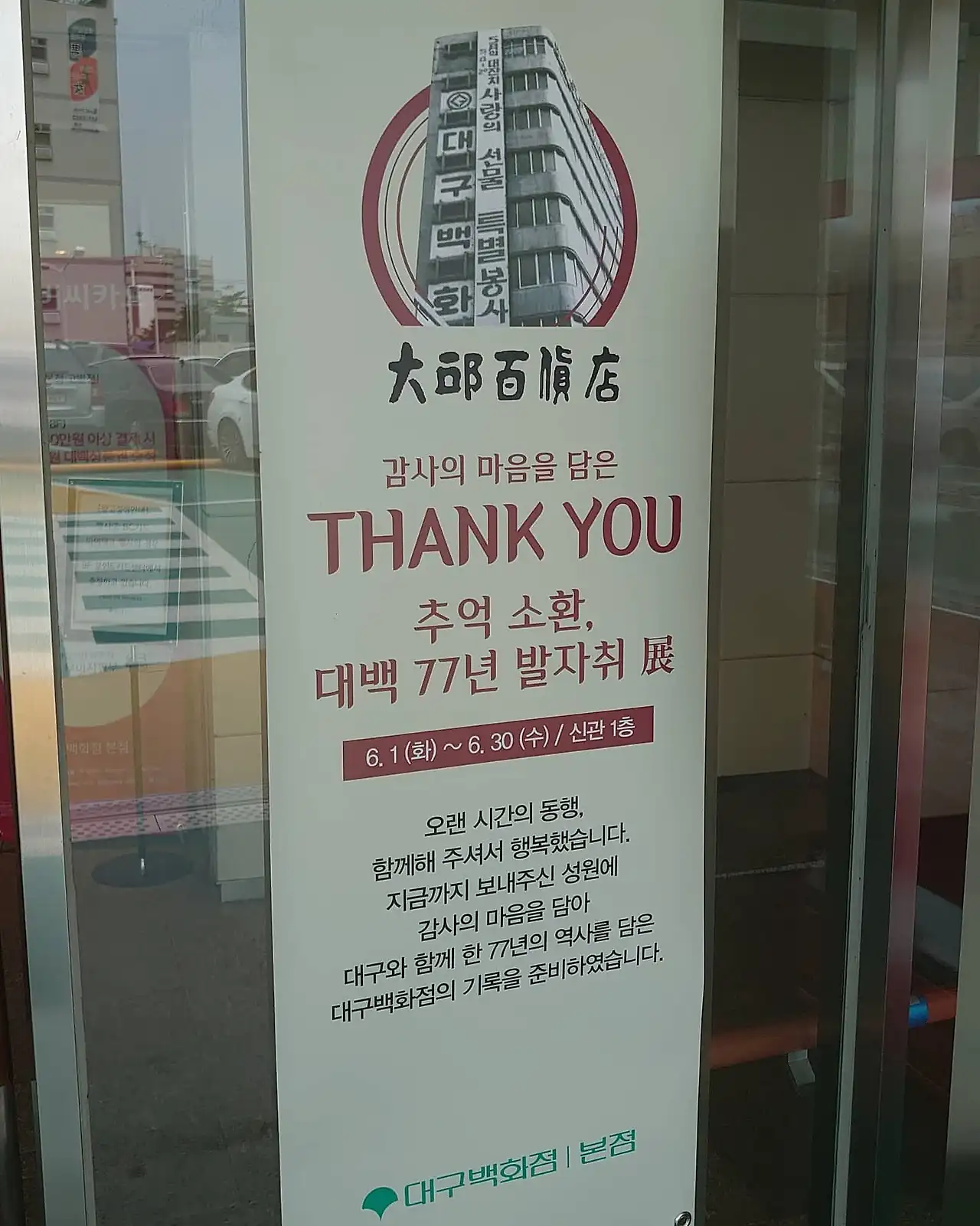 그런 기억, 의미가 있다 보니 어떤 매장은 폐점하는 게- 단순 폐점이 아니라 추억의 장소가 사라져서 비감한 기분이 더 들기도 하다. 개인 경험이지만 난 서점보다 대형마트나 백화점이 그런 느낌이 많이 드는 듯하다. 이달 초 대구백화점 본점에 가서도 그런 생각이 들었는데- 본점이 역사가 무척 오래됐고 국내에서 드문 지역 백화점인데 대기업 백화점 공세에 못 이겨 결국 본점 문을 닫았다. 다른 지점이 남아있긴 하지만. 본점은 상징적인 장소라서. 지역을 대표하는 번화가에 있기도 했고. 여러 가지 이유로 여기 소식은 충격적이었다.