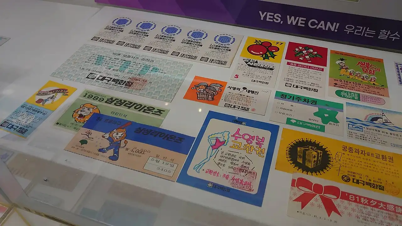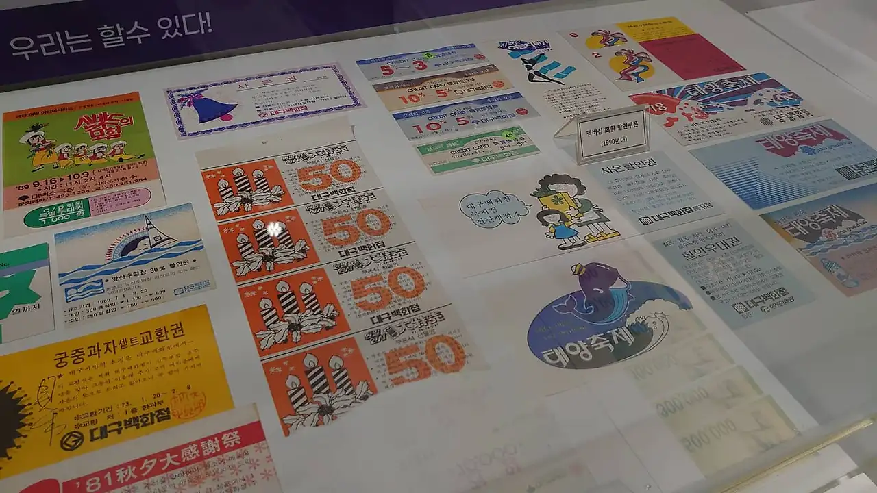 아무튼 고별전을 한다길래 고별 기념 할인행사와 기념 전시를 한다고 해서 오랜만에 가봤다. 기념 전시에는 볼거리가 참 많았다. 역사가 오래된 지역 유통채널이라서 그런지 여기 자체가 지역 역사이기도 했고. 옛날 백화점 명절 선물 카탈로그나 광고모델 변천사, 옛날 백화점 종이가방, 옛날 포장지, 시대별 직원 유니폼, 역대 백화점 카드, 역대 백화점 상품권, 각종 티켓, 수료증, 상장 등. 박물관에서 전시해야 할 물품이었다. 사료 가치가 높은 전시인데 이걸 1층 구석 귀퉁이에 작게 마련해서 많이 아쉬웠다.