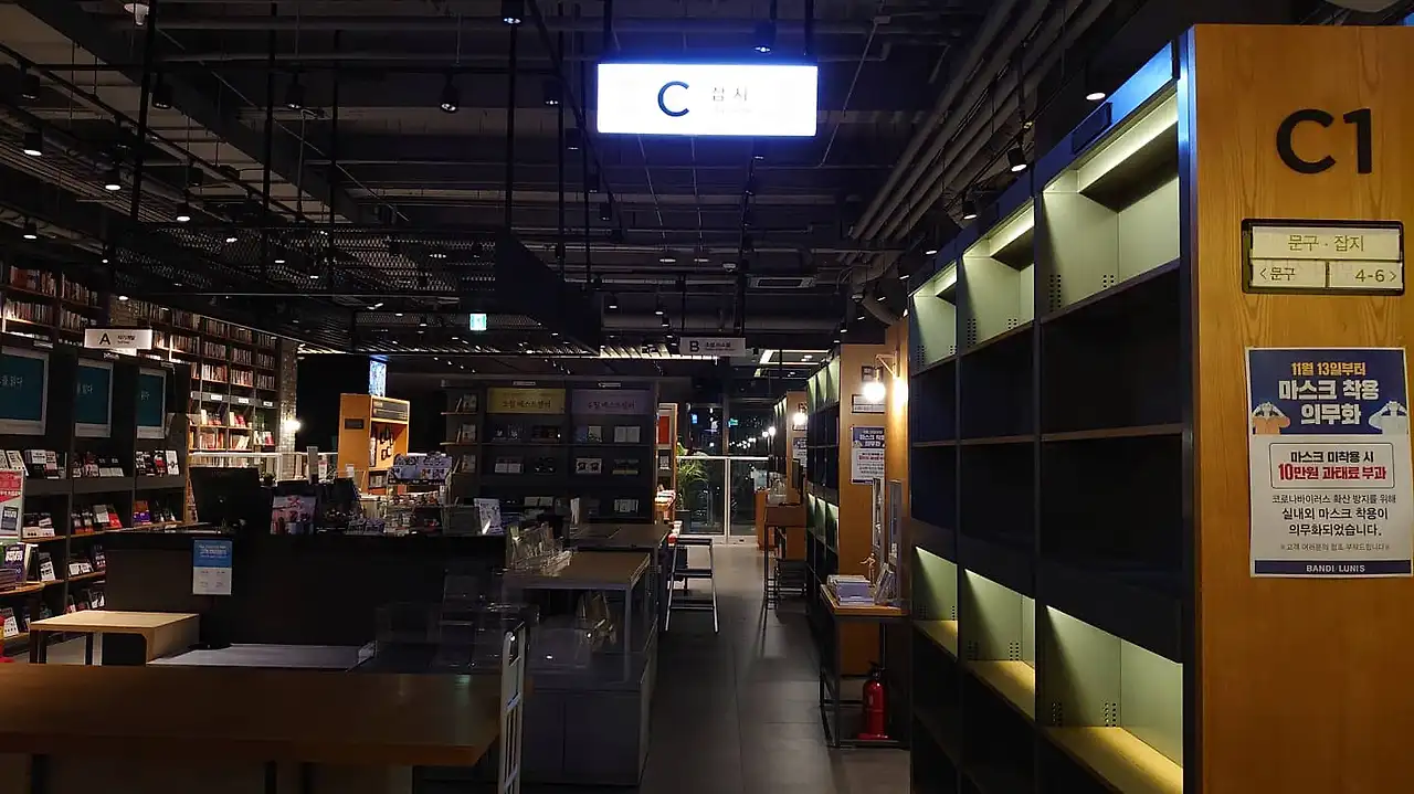 근데 서점만 문 닫았고 아띠제나 편의점은 그대로 운영하고 있어서 요즘도 이 건물에 자주 간다. 지하에 식당이나 카페도 많고. 이 건물 자체는 여러 기업이 입점해서 영업하고 있으니까. 최근 작업에 집중하는 데 어려움이 있어서 이 매장을 자주 가는데- 영업을 종료한 반디앤루니스 코너를 마주하면서 작업을 겨우 겨우 하고 있다. 간판은 그대로고 일부 책장은 거의 비었는데- 아직 책이 한가득 꽂힌 책장도 있다. 출판사에서 미리 책을 빼갔다고 들었는데 그대로 남은 책은 뭐지 싶고.