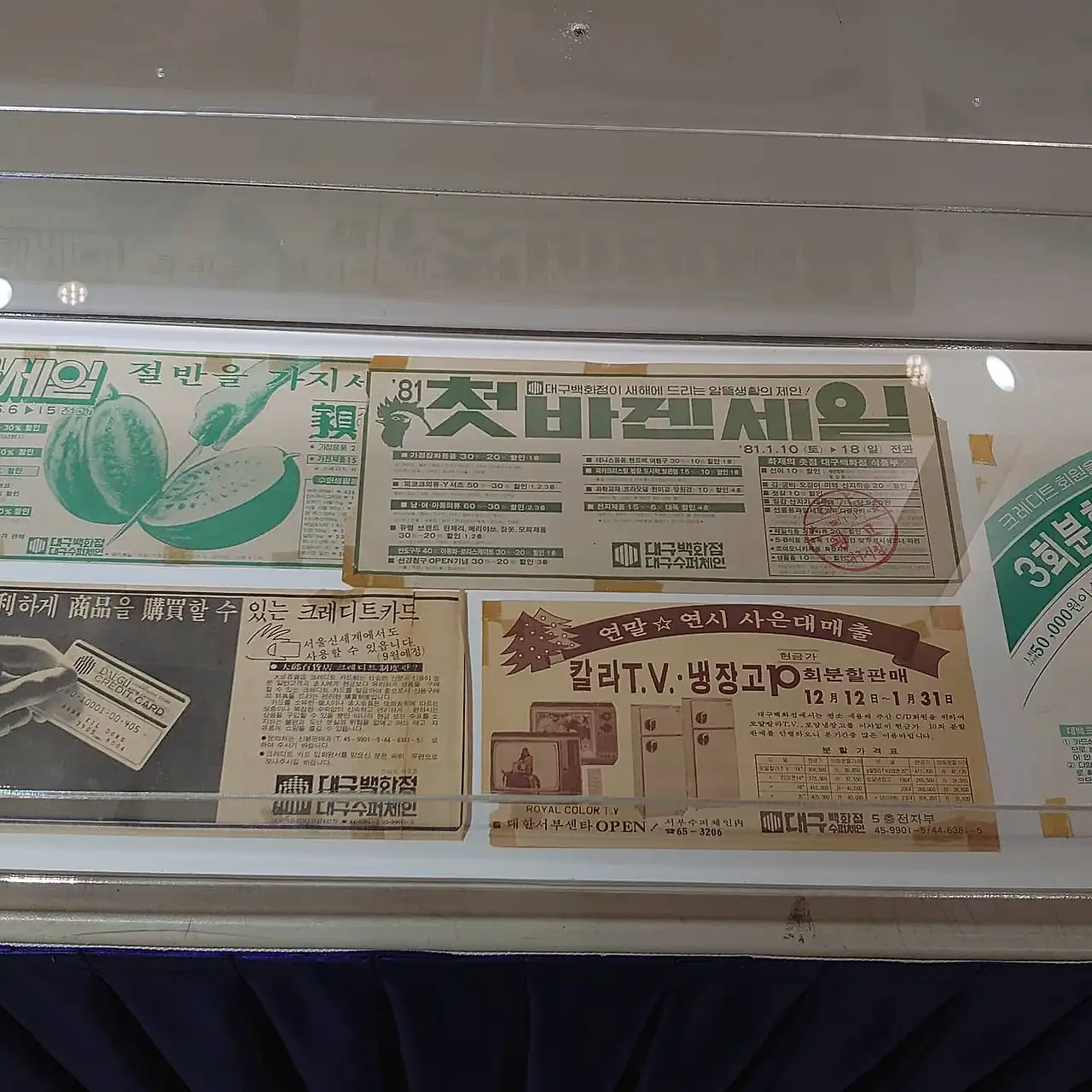 이번에는 이 정도로 전시했다 하더라도 다음에는 좀 제대로 하면 좋겠다 싶었다. 지역 역사관에 기획전을 한다거나- 돌아보면 지역 유통채널이 다른 곳도 있을 테니 동아백화점 같은 곳과 연계해서 하거나. 이건 지역 상업 역사이기도 한데 지역 경제를 회고하고 기억하는 의미에서라도 가볍게 흘려보낼 역사는 아닌 듯하다. 삼성상회도 대구에서 시작했기 때문에 유통을 키워드로 할 수 있는 전시나 기념 행위는 여럿 있지 않을까 싶고. 누군가 '비슷한 시기에 사업을 시작한 두 기업 운명이 이렇게 갈렸다'라고 하는데 '수고하셨다'라고 말하고 싶다.