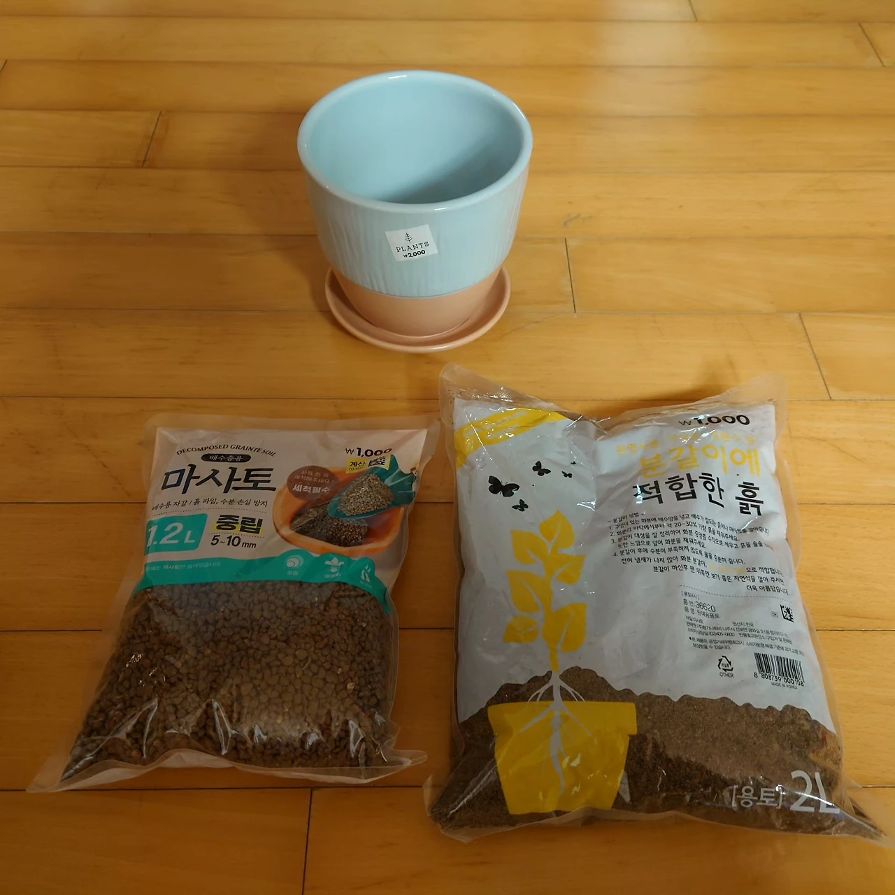 집에 있는 화분들도 분갈이가 필요해서 다이소에서 마사토와 흙을 더 샀다. 가격은 저렴했다. 각 1000원이고, 분갈이할 화분을 2000원에 샀으니 분갈이에 4000원이 들었다. 집에 있는 화분들은 스파티필름과 멜라닌 고무나무였는데 올 겨울에 페이지 그린에서 샀다. 모종 상태로 산 거라 어디든 옮겨 담아야 했다. 스파티필름은 안 쓰는 화분에, 멜라닌 고무나무는 다이소에서 산 화분에 옮겨 담았다.