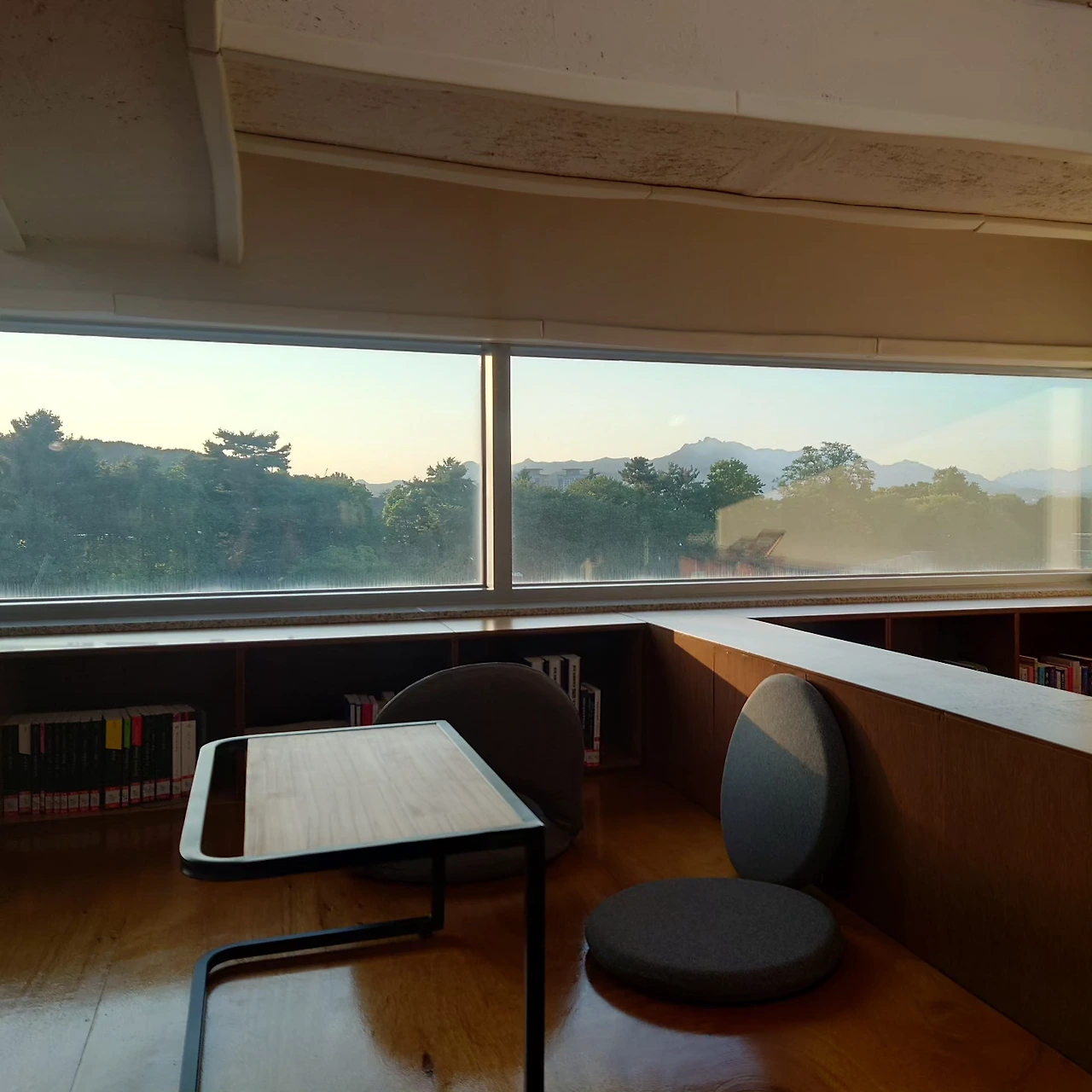 성곽 근처까지 올라가는 건 너무 힘들었지만 그래도 귀가할 때 산 아래를 내려다볼 수 있어 좋았다. 위에서 아래로 내려다보이는 풍경이 아름다웠고, 특히 노을에 물든 아파트, 주택 모습이 분위기 있었다. 그 뒤로 펼쳐진 성곽 풍경은 웅장하고 운치 있고. 이렇게 좋은 날씨에 도서관 와서 책보거나 일 보는 사람들은 그래도 진중하게 시설을 이용할 거란 믿음이 들었는데(요즘은 카페도 많이 가지만 조용한 도서관에, 그것도 무더운 날씨에 오기 힘든 위치에 있는 산 도서관을 찾아온 사람들이면 뜻도 있지 않을까)어느 정도 기대에 부합했고, 덕분에 쾌적하게 시설을 이용했다.