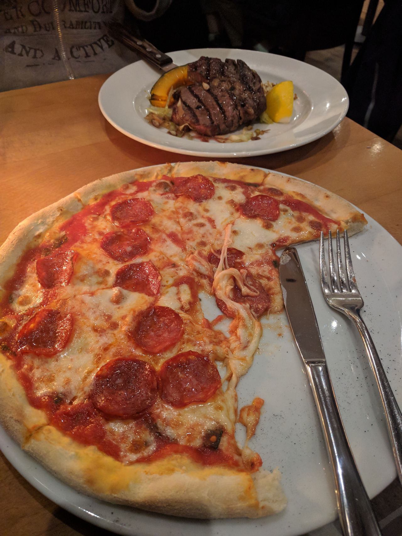 현지 시간에 맞춰 우리도 저녁을 먹기로 했다. 외사촌 동생은 구글 맵을 뒤지더니 '로케일'이라는 이탈리안 식당으로 안내했다. 현지 와서 처음으로 밥을 사 먹다 보니 둘 다 은근히 긴장했다. 인종차별당할까 봐. 돈 쓰러 와서 그런지 다행히 환대해줬다. 우리는 피자와 스테이크를 주문해서 나눠먹었다. 앞으로 8박 10일간 잘 부탁한다는 인사도 함께. 저녁 8시가 흘쩍 넘었지만 매장은 사람들로 붐볐다. 그 점에서 런던이 서울과 비슷하다는 생각이 들었다. 다른 지역은 저녁 6시 이후로 문 닫는 가게도 많은데. 물론 식당이나 바는 그 시간에 영업하는 곳도 있지만. 런던의 밤은 길어서 어딘가 친숙했다. 식사를 마친 뒤에는 근처 스타벅스를 구경했다. 여행 가면 스타벅스 매장에서 파는 현지 시티 머그를 구경하는 게 취미인지라. 이후 왔던 길을 돌아 야경을 구경하며 지하철을 타고 다시 숙소로 돌아왔다. 이제 정말 런던에 무사히 도착했다.