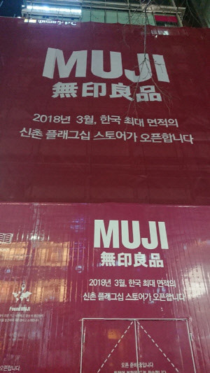 말이 길었는데 아무튼 무인양품 국내 최대 플래그십 매장 구축 계획도 현장에 가서 알게 된 내용이었다. 어느 월요일 밤이었는데 취재차 가산디지털단지 마리오 아웃렛에 있었다. 저녁 먹고 집에 가고 싶었는데 왠지 그날 신촌을 가봐야겠다는 생각이 들었다. 너무 귀찮았다. 거기서 너무 멀고. 그래도 5714번이 한 번에 가니까 참고 갔다. 밤 10시 가까운 시간에 도착했는데 우연히 무인양품 건설현장을 봤다.