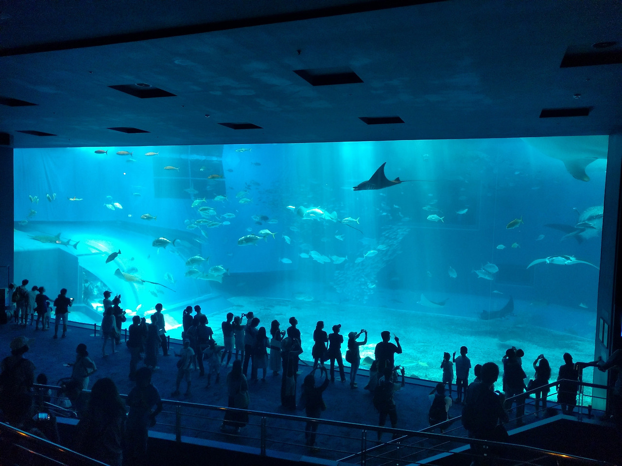 오키나와에는 일본 본토에서 온 관광객은 물론 한국인, 중국인 가족 관광객이 많았다. 수족관에는 국적 상관없이 모든 엄빠들이 카메라를 들고 토끼 같은 자식들 사진과 영상을 찍느라 여념 없었다. 나도 가족들과 함께 수족관에 가봤다면 좋았을 텐데. 유원지, 놀이공원, 유적지도 갔는데 왜 수족관에 안 갔을까. 그러나 츠라우미 수족관이 기억에 남는 건 규모가 압도적이기 때문인 듯. 내가 가본 수족관 중에서 가장 컸다.