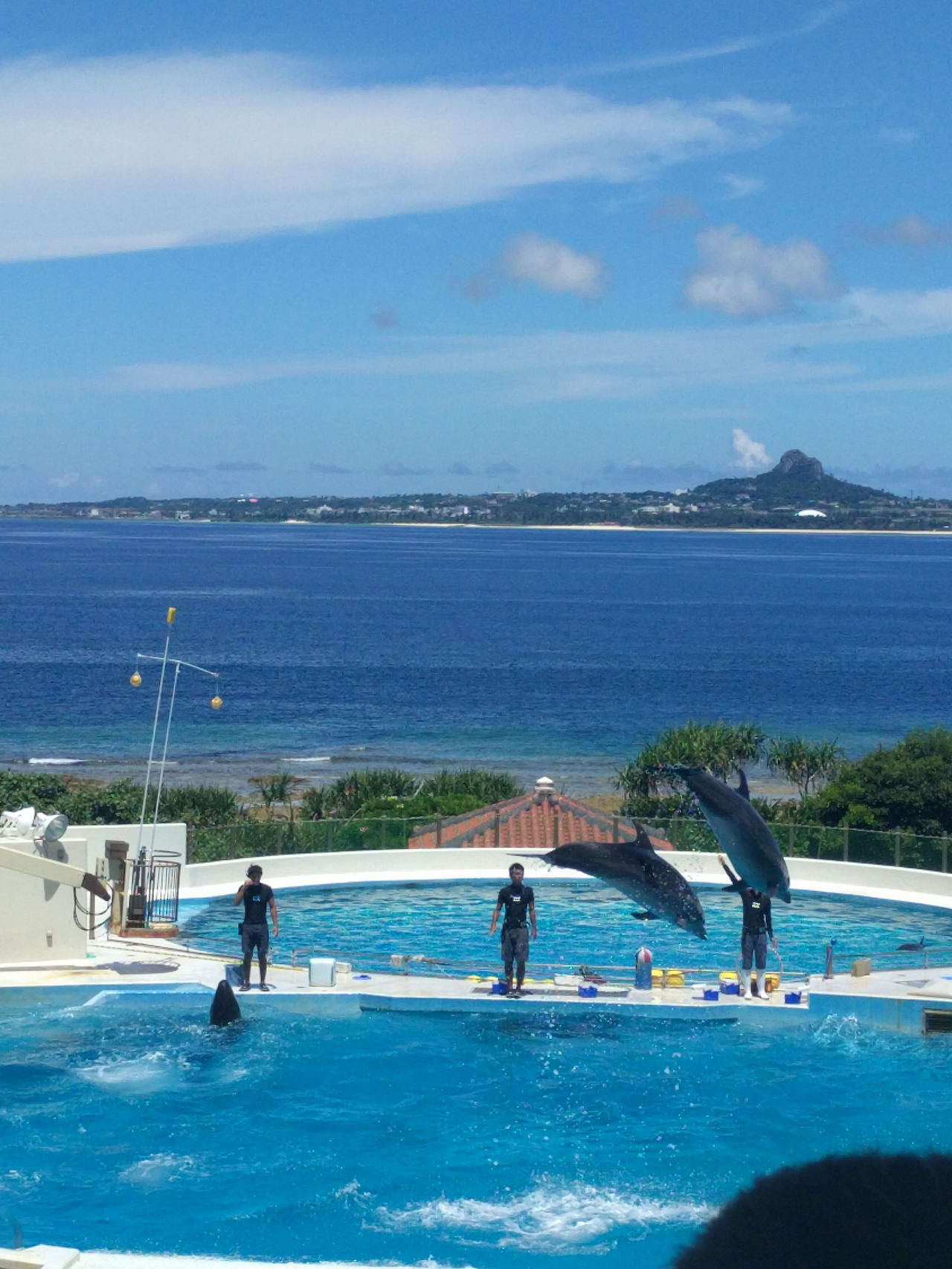 오키나와 츠라우미 수족관 돌고래 쇼. 사진=딱정벌레그 이후로는 수족관을 매년 한번 꼴로 자주 갔다. 진정한(?) 수족관을 관람한 건 2017년 여름휴가로 오키나와에 갔을 때였다. 오키나와에 츠라우미 수족관이 유명하다. 나도 거기에 갔다. 츠라우미 수족관 가면 꼭 찍어오는 기념사진이 있다. 바로 대형 수조 앞에서 사람들 실루엣이 담긴 사진. 그 수조가 엄청 커서 아우라도 있고. 그 수조를 보면 내가 오키나와에 온 게 실감도 났다. 츠라우미 수족관 돌고래쇼도 백미고.