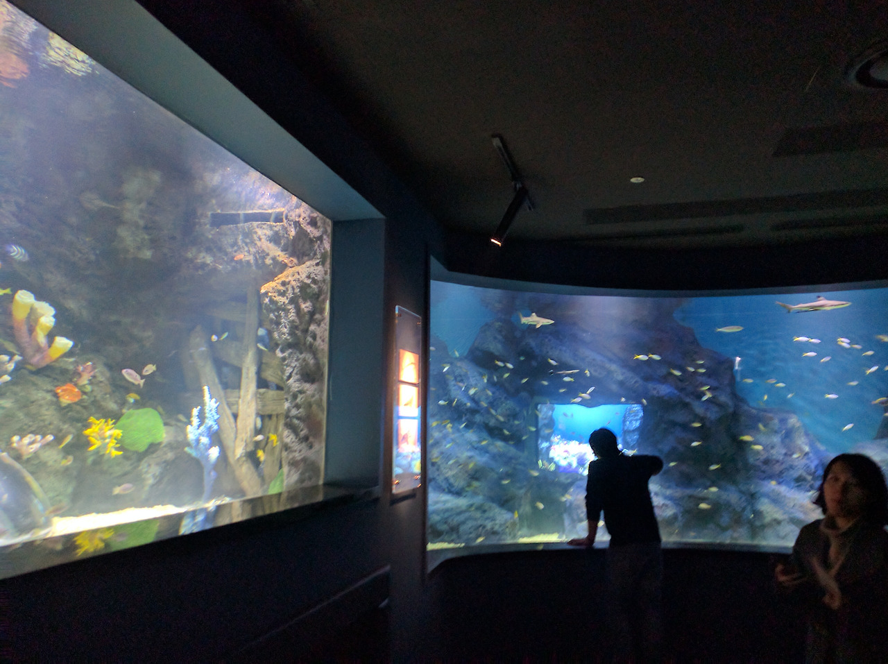 대구 신세계백화점 수족관. 사진=딱정벌레그러고 한동안 수족관에 갈 일이 거의 없었다. 수족관을 다시 간 건 기자가 되고 나서 대구 신세계백화점 기자간담회에 갔을 때였다. 2016년 12월. 신세계가 40년 만에 대구에 다시 백화점을 열었는데 동대구역 근처에 있었다. 옥상에 수족관과 테마파크도 올리고. 유통업체들은 오프라인 매장을 새로 열면 기자간담회와 투어를 같이 한다. 대구 신세계백화점도 투어를 진행하면서 우리에게 수족관도 보여줬다.