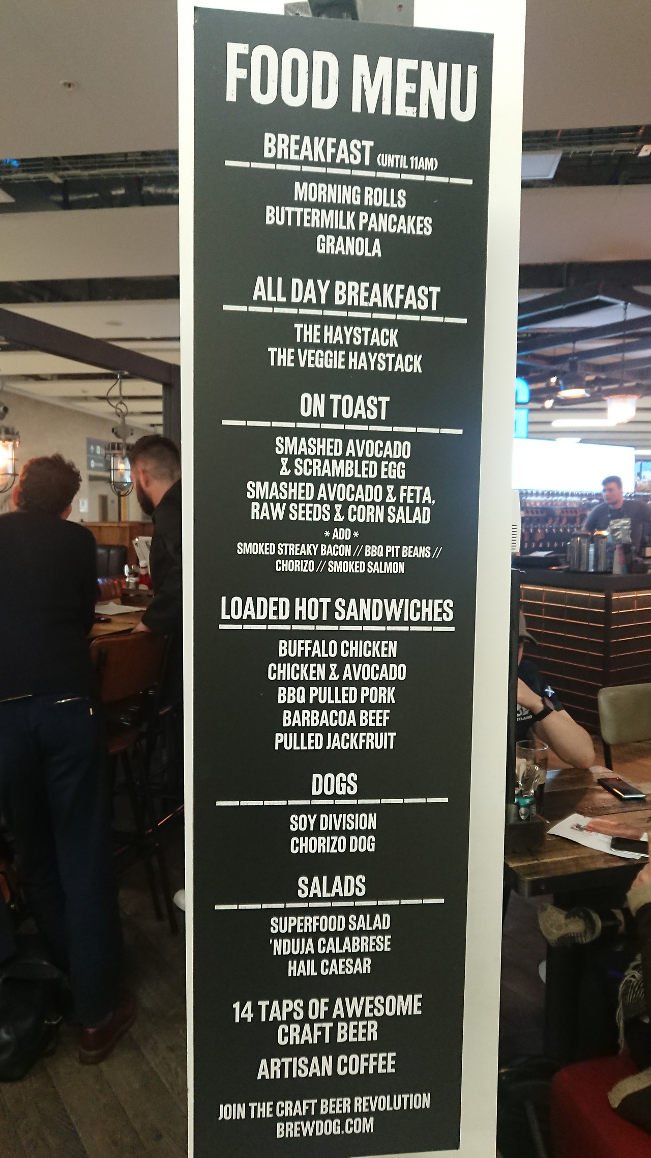 세관을 뒤로하고 공항을 더 둘러봤다. 브루독 매장이 공항에도 있어서 신기했다. 아침부터 맥주를 마시는 사람들도 생경한 느낌. 브루독은 매장마다 파는 음식이 다른 듯했다. 공항에는 식사를 해결하려는 사람들이 많다 보니 아침 메뉴도 따로 있었다. 모닝 롤, 버터 우유 팬케이크, 그래놀라 이렇게. 올데이 브렉퍼스트는 해이스택이라는 게 있는 게 뭔지 모름. 토스트와 핫도그, 샐러드, 샌드위치, 커피도 팔고. 전날 우리가 간 매장은 피자 말고 딱히 없었던 것 같은데.