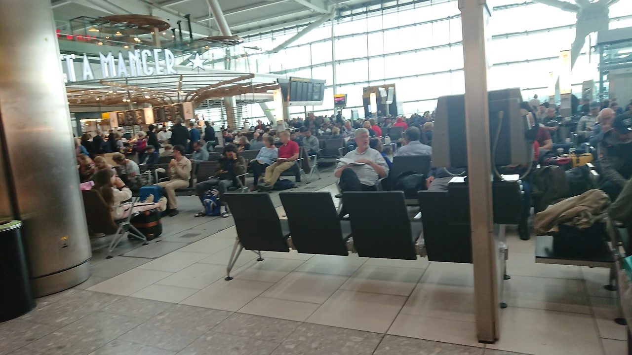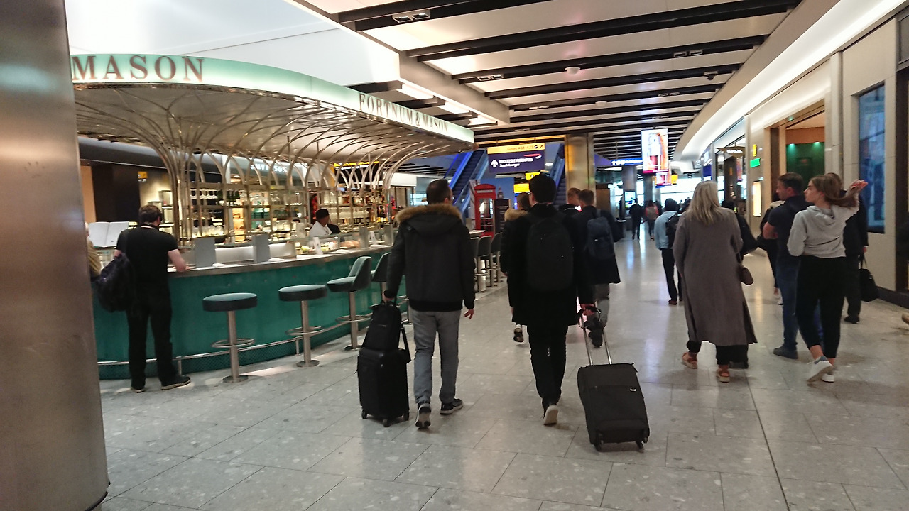 2층에 올라가니 식당은 아침부터 맥주 한잔 걸치면 떠드는 사람들로 시끄러웠다. 그래, 공항은 낮과 밤이 따로 없겠구나. 수하물 외에 짐을 검사받고 통과해야 했다. 사람이 많고 복잡했다. 이런 데서 늘 보는 풍경이지만 공항 직원은 자동응답기처럼 안내사항을 무한 반복하고 있었다. 난 물을 버리고 오는 걸 깜박했다. 공항 직원이 알아서 물병을 휴지통에 버렸다. 어수선한 분위기 속에서 통과하고 나니 면세점과 각종 식음료 시설이 눈앞에 펼쳐졌다. 면세점은 별로 볼 게 없었다. 나도 살 거면 히드로 가서 사지 여기서는 돈 쓸 생각 없었다.