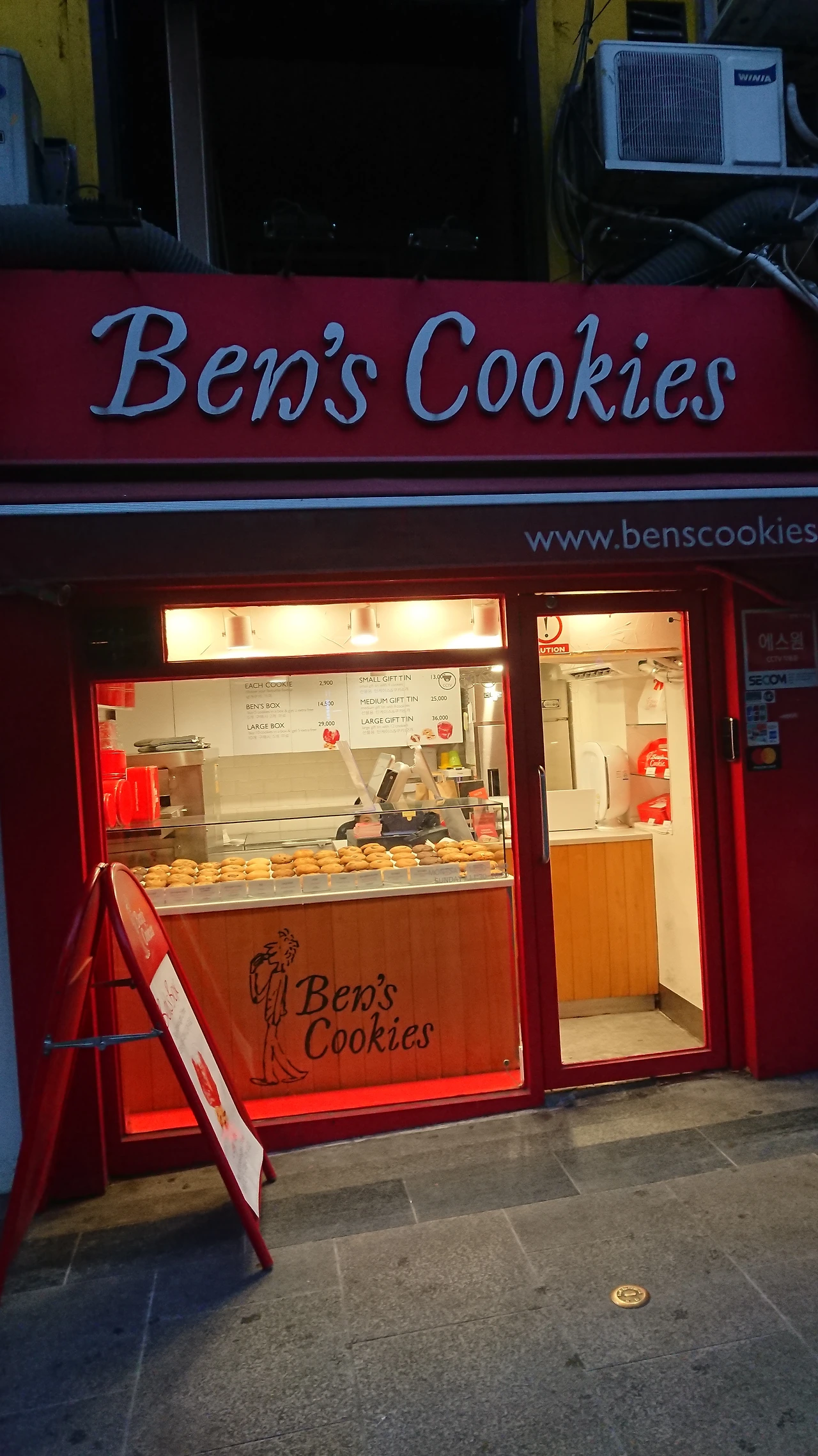 그렇게 무사히 돌아왔다. 향수 용량이 많아서 따로 신고했는데 공항에서 대수롭지 않다는 듯 그냥 보내줬다. 애매하게 바뀐 시차 때문에 와서도 1~2주는 그리니치 시간대에 사느라 고생(?)했는데. 원래 밤에 잠을 잘 안 자기도 해서 새삼스럽지도 않은. 낮도 좋지만 밤은 더 좋다. 새벽 감수성을 조심하면 대체로 평화롭다? 직장 동료에게 줄만한 걸 따로 준비하지 못해서 출근 전날 이태원에 갔다. 벤스 쿠키나 브루독은 국내에도 매장이 있다. 벤스 쿠키는 여러 군데. 이태원에도 매장이 있어서 쿠키를 좀 샀다.