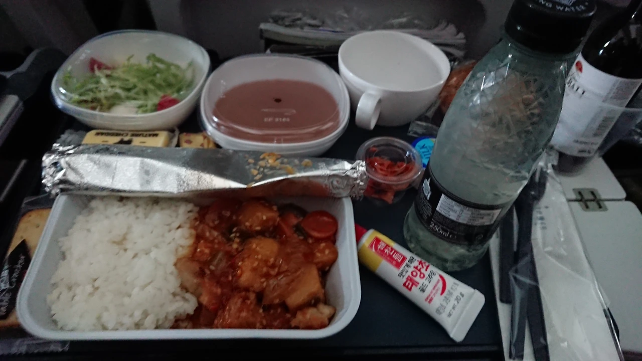 탑승을 앞두고 늘 그렇듯 줄이 길게 늘어섰다. 귀찮게 줄을 길게 서고 싶지 않아서 좀 늦게 탔다. 입국할 때 승무원은 복장이 약간 불량(?)해 보였는데 출국할 때는 다들 정복 차림이었다. '이 회사에서 이런 모자도 쓰고 재킷도 입었어?' 싶을 정도로. 왠지 입국할 때는 승무원들이 집에 간다는 생각에 들떠서 옷을 저렇게 입었나 싶을 정도? 돌아갈 때는 1시간 정도 단축돼서 11시간 정도 걸리는데 많이 피곤해서 푹 잠들고 싶었다. 맥주 달라고 했는데 하이네켄을 줘서 약간 아쉬웠고. 점심을 먹을 때는 와인을 한병 받았다. 기내식은 두 번 나왔는데 첫 번째는 한식을 먹었다. 두 번째는 오믈렛 따위를 먹었는데 매그넘 아이스크림을 줬고.