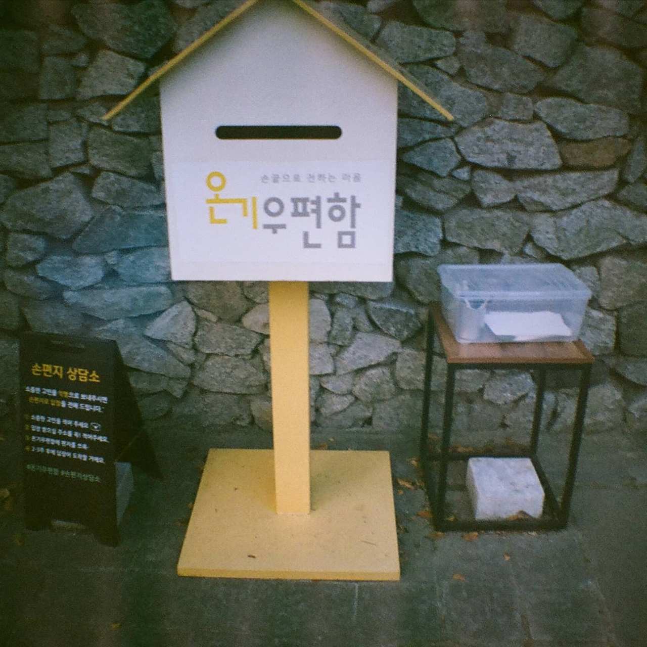 건물 3층에 있는데- 들어서니 빈티지한 느낌이 물씬 풍겼다. 영화 '화양연화'가 연상된달까. 필름 현상을 해야 하니 공간 전체 조명이 암실 분위기가 났는데- 소품도 아날로그틱하고 빈티지한 느낌이 나는 것들로 채웠다. 테이블도. 우체통 같은 곳에 사람들 이름을 적은 사진 봉투를 가득 꽂은 것도. 온라인 쇼핑몰에서 못 보던 필름도 많이 팔았다. 인상 깊었던 건 스캐너 종류를 고를 수 있게 해 줬다는 것. 화질은 다른 데서도 선택하게 해 주지만. 스캐너 선택권도 주는 건 처음이었다. 가격표도 예쁘고.