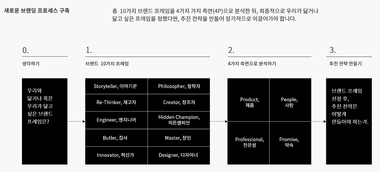 이제 10개의 브랜드 프레임을 대표하는 브랜드의 이야기를 만나보자. 당신의 브랜드가 닮거나 닮고 싶은 프레임이 있는 지 살펴보고 당신만의 브랜드가 가져야 할 무형의 자산은 무엇인지 생각해보자.
