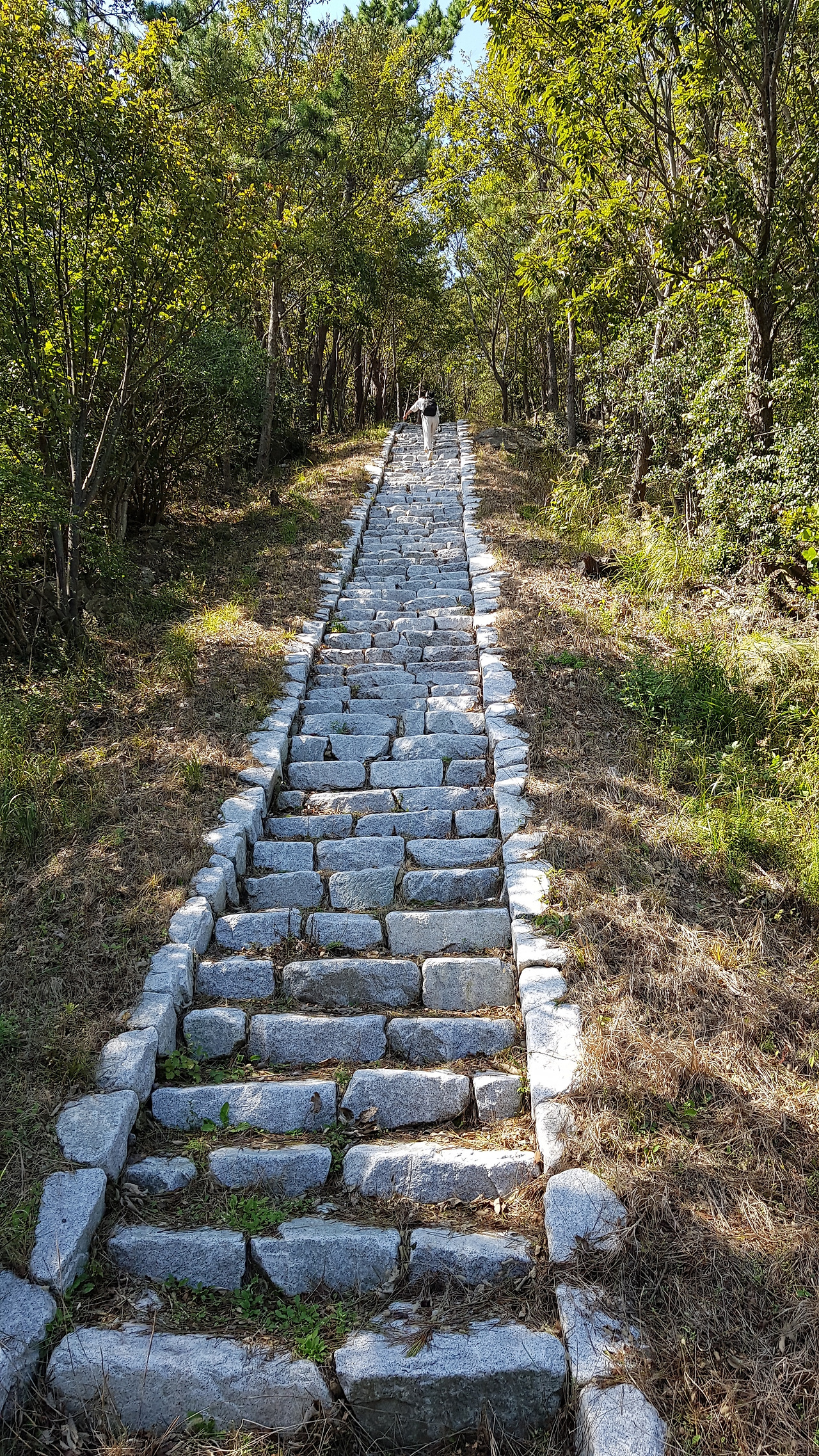 ‘노도’라는 섬에서 가장 인상깊었던 것은 ‘계단’이다. 정말 끊임없는 계단이 늘어서 있었다. 계단은 김만중이 자신의 묘지 자리로 삼아놓았다던 허묘로 가는 길에만 놓여 있다. 계단은 인적이 드문 것을 증명하듯 나뭇잎들로 쌓여있기 때문에 한 걸음을 내딛을 때마다 자꾸만 미끄러진다. 등에 매고 있는 가방이 갈수록 무거워지는 기분이다. 가파른 경사를 오르며 자꾸만 뒤를 쳐다보게 된다. 앞은 계속되는 동일함의 반복이다. 끝이 보이지 않는 계단 속에서 불가의 108계단이 생각나기도 하고, 천국으로 가는 계단이 떠오르기도 한다.