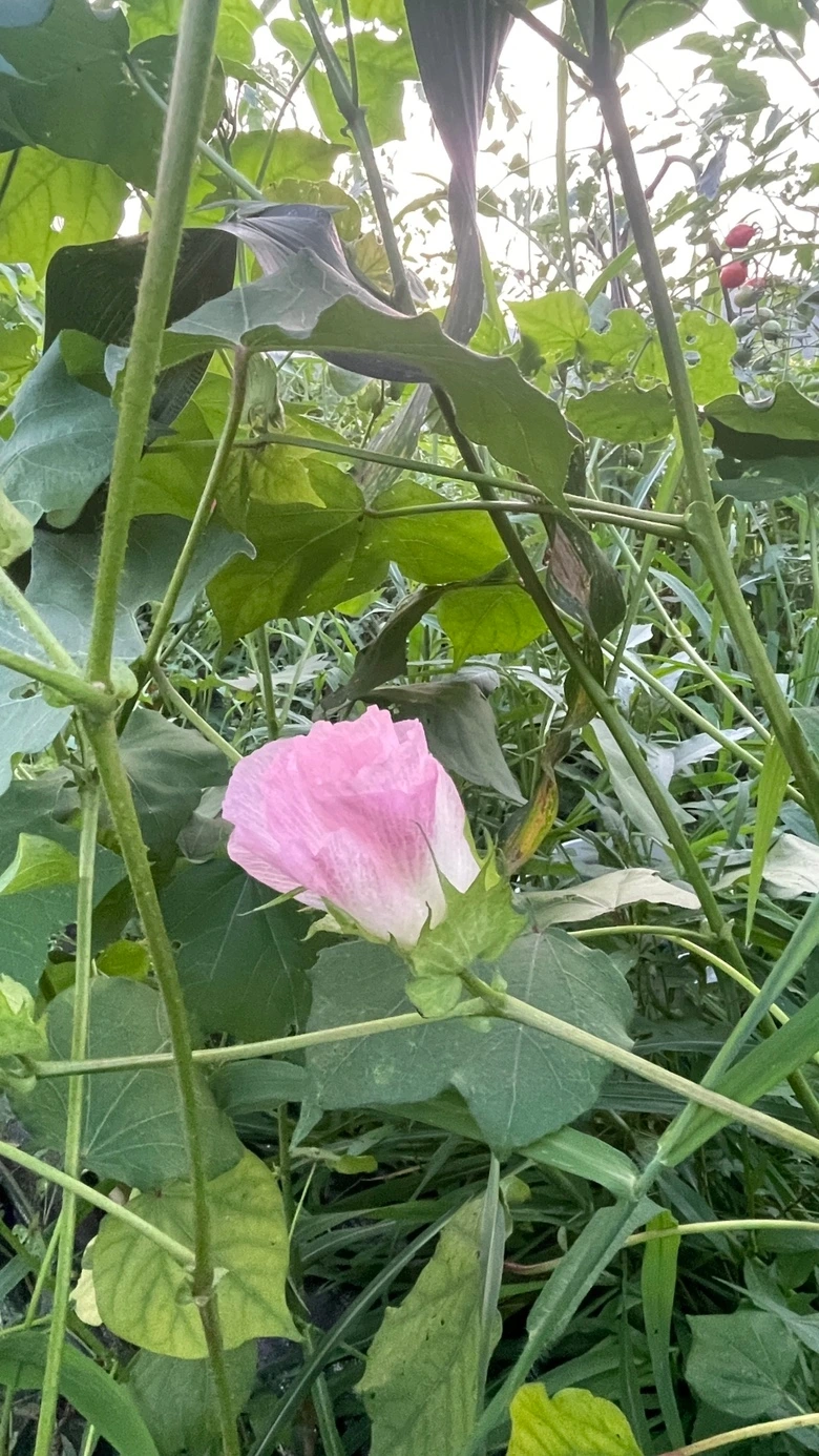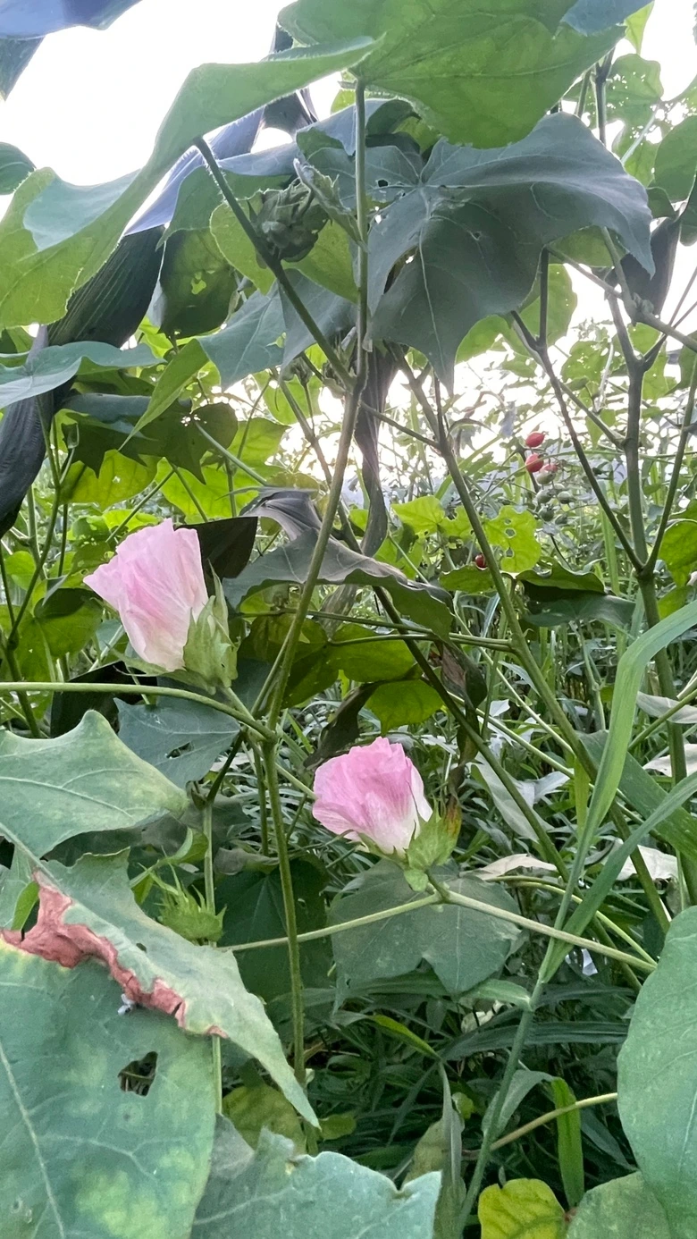 남해 바라보던 목화씨를 미야언니께 한 움큼 건네받았다. 하얀 빛깔 분홍빛 은은한 자줏빛 우아하고 고고한 자태 목화꽃 피우네. 땀 뻘뻘 흘리다가 텃밭에 방울토마토 몇 개 따먹고 목화 꽃바라 보니 여기가 파라다이스. #반해버린 여름날목화밭에서#땡스문익점