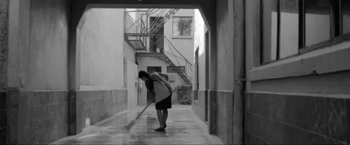 <로마>는 영화의 세계인 다른 시점(時點)의 시공간에서 존재할 수 없는 관객의 시점(視點)을 객관적인 거리를 유지한 카메라의 시선으로 구현해낸다. 영화의 시공간은 1970년대의 멕시코시티에 위치한 Colonia Roma 지역으로 재현해낸 시공간이자 현재의 시공간과는 다른 영화의 세계이다. ‘감독의 지나가버린 과거의 기억에서 비롯된 영화의 시공간에서 존재할 수 없는 감독 자신과 카메라 혹은 관객들은 어떤 시점으로 영화의 세계에 머무르나?’ 이 같은 질문은 영화를 보는 내내 지속적으로 든 나의 의문이었다. 다시 첫 장면으로 돌아가 보자.