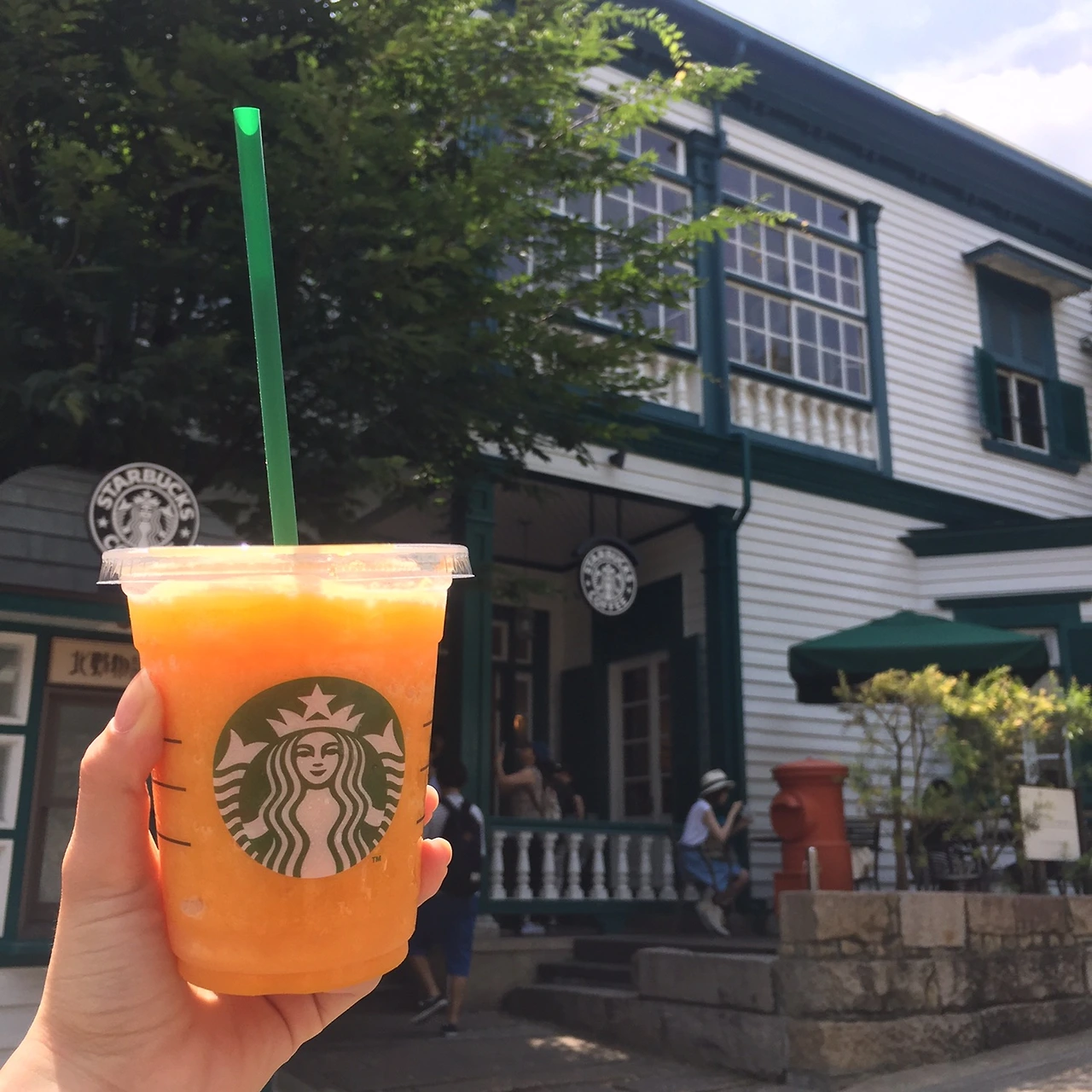 그 나라에만 파는 스타벅스 음료와 우리나라엔 없는 오렌지 파운드케이크를 먹을 생각에 매장이 보이면 들리곤 하는데, 여기는 찾아서 갔던 곳이다. 고베에 있는 스타벅스 매장은 오래된 2층 주택 건물로 유형 문화재에 등록된 곳이다. 밖은 청록색 컬러를 포인트로 화이트와 조화를 이루었다면 건물 안은 주황색 컬러로 고풍스러운 분위기를 느낄 수 있다.