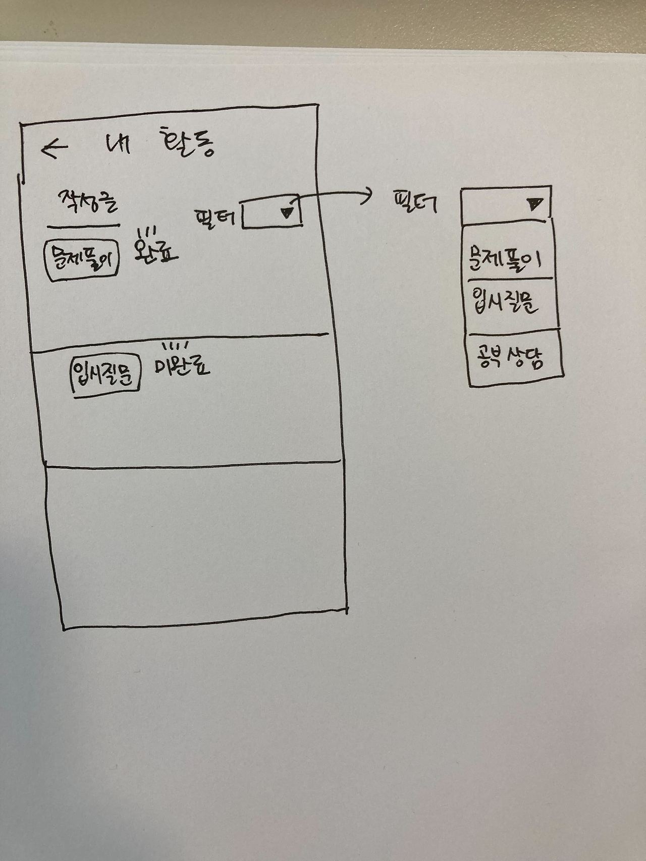김과외의 경우, 질문 페이지에 문제 풀이/ 입시 질문/ 공부상담 등을 모두 올릴 수 있다. 따라서 작성글에 들어갔을 때 다양한 종류의 질문이 한번에 보인다. 원하는 질문들만 모아서 볼 수 있도록 필터링 기능이 있으면 좋을 것 같다.