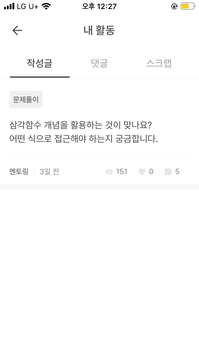 -완료/미완료 질문을 분류하지 않았다. 상단의 배너를 눌러서 들어가면 작성한 모든 질문이 보인다.