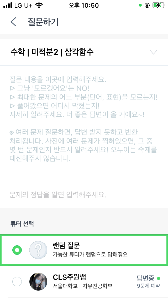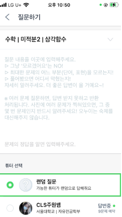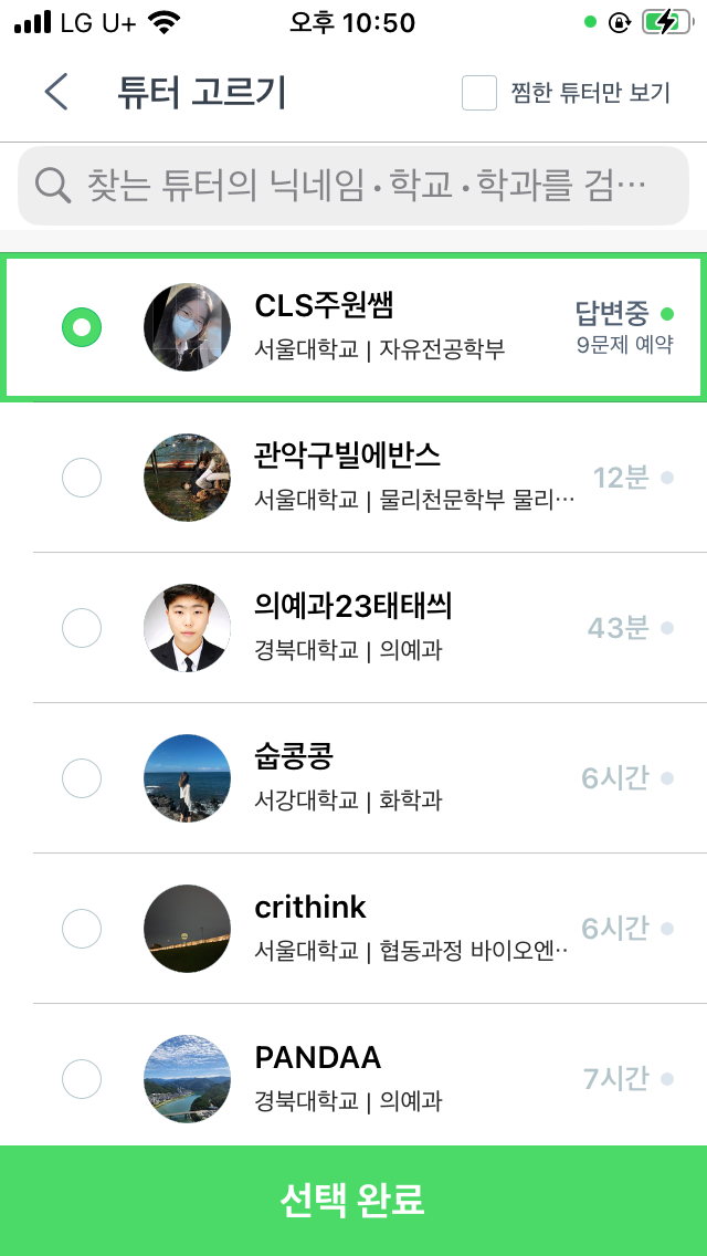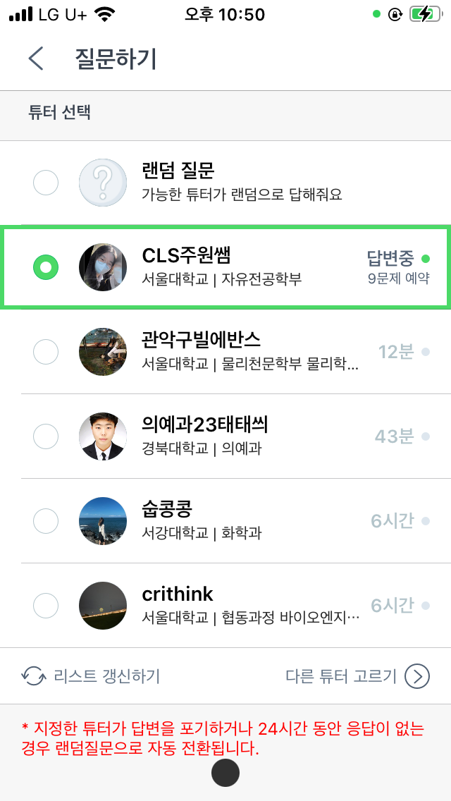 4)응답받고 싶은 튜터를 선택할 수 있다.