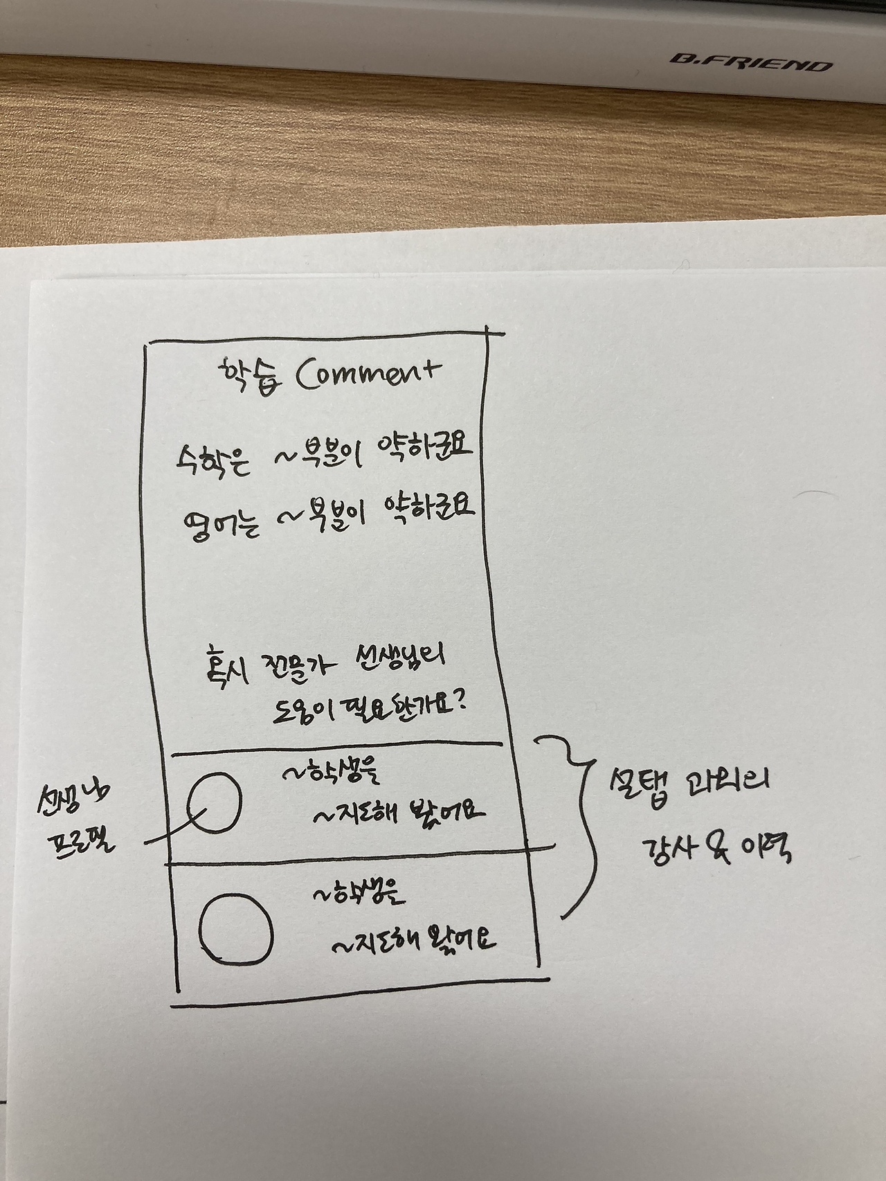 2)학습분석 페이지: 전체적인 학습에 대한 분석 (Comment) ,, 같은 회사 과외 서비스‘설탭’ 홍보(~ 부분이 부족하니 ~ 선생님께 관리 받아보면 어때?)