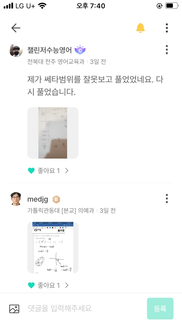 -사진 업로드 시 문제사진, 풀이사진, 해설지 사진 3종류의 사진을 분류 해 놓았다.