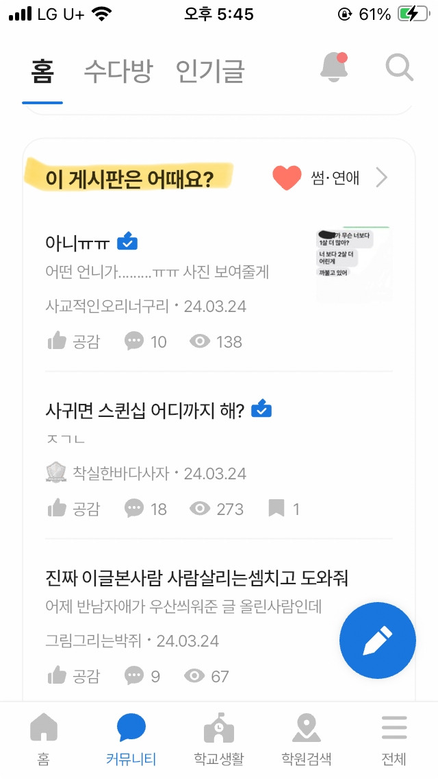 블라인드의 경우,hot이 표시된 글 1개만 상위에 노출한다.