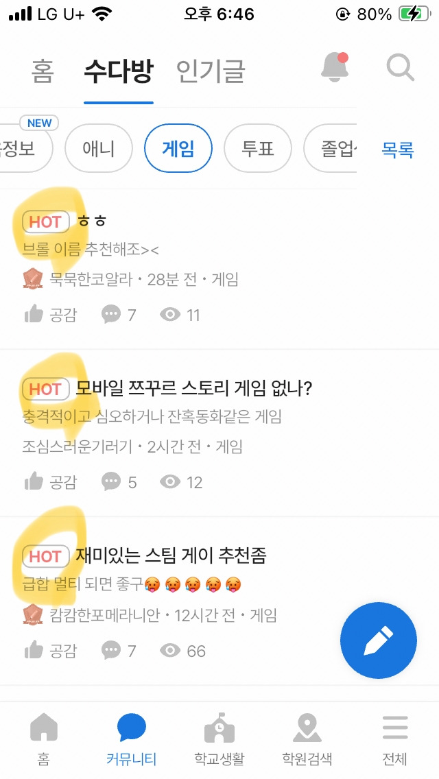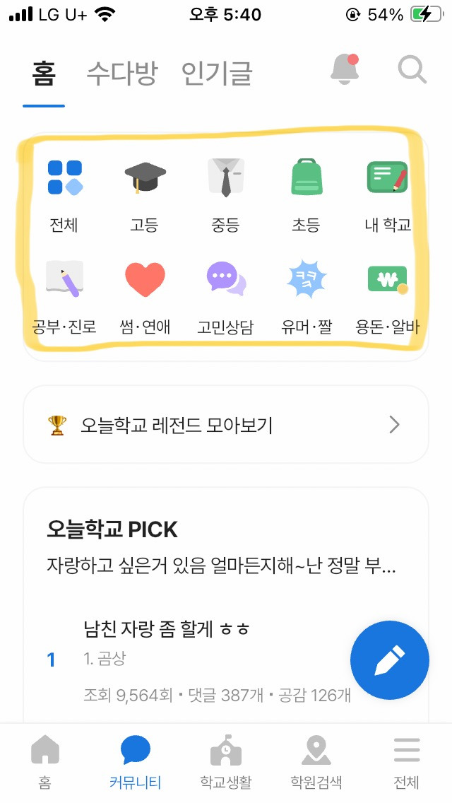 -아이콘을 사용하여 커뮤니티 많은 커뮤니티 주제들을 한눈에 파악할 수 있다.