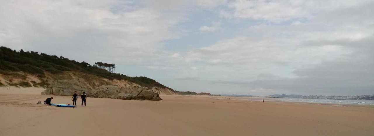 해안절벽을 지나 순례길을 찾았는데 그만 해변으로 내려오는 실수를 범했다. 다행히 썰물 때였다. 물이 막 빠져나간 곳은 그래도 걷기에 수월했다. 아직은 해수욕하기에 이른 때였지만 파도가 높아서인지 서핑을 즐기려는 사람들은 군데군데 파도를 즐기고 있었다. 카미노 앱의 지도를 보면서 해변의 끝인 소모에 도착했다.