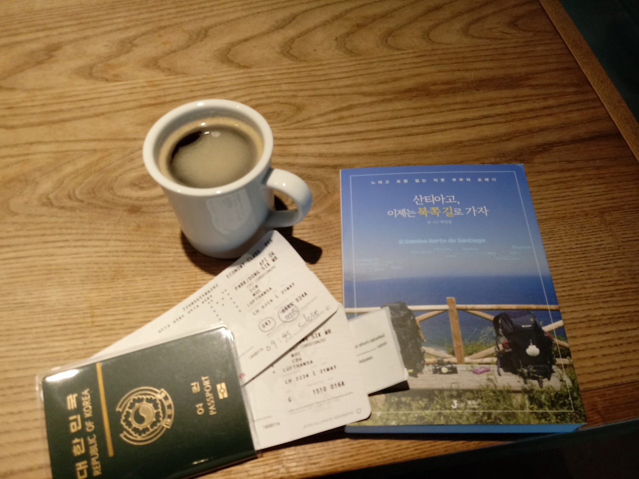 5시에 눈이 떠졌고 어젯밤에 챙겨놓은 배낭을 짊어지고 아내에게 짧은 인사와 함께 출발했다. 공항은 떠나는 사람과 도착하는 사람들로 언제나 활기가 있다. 그 활기 넘치는 사람들의 대열에 나도 동참한다는 생각을 하니 뿌듯했다. 반면에 긴 시간 내가 잘 걸을 수 있을까 하는 걱정은 더 큰 짐으로 뿌듯한 나를 누르고 있었다. 한국 들어오기 전에는 맛보지 못할 얼큰함으로 아침을 채우고 싶었다. 순두부찌개로 배를 채우고 출국장으로 들어갔다.
