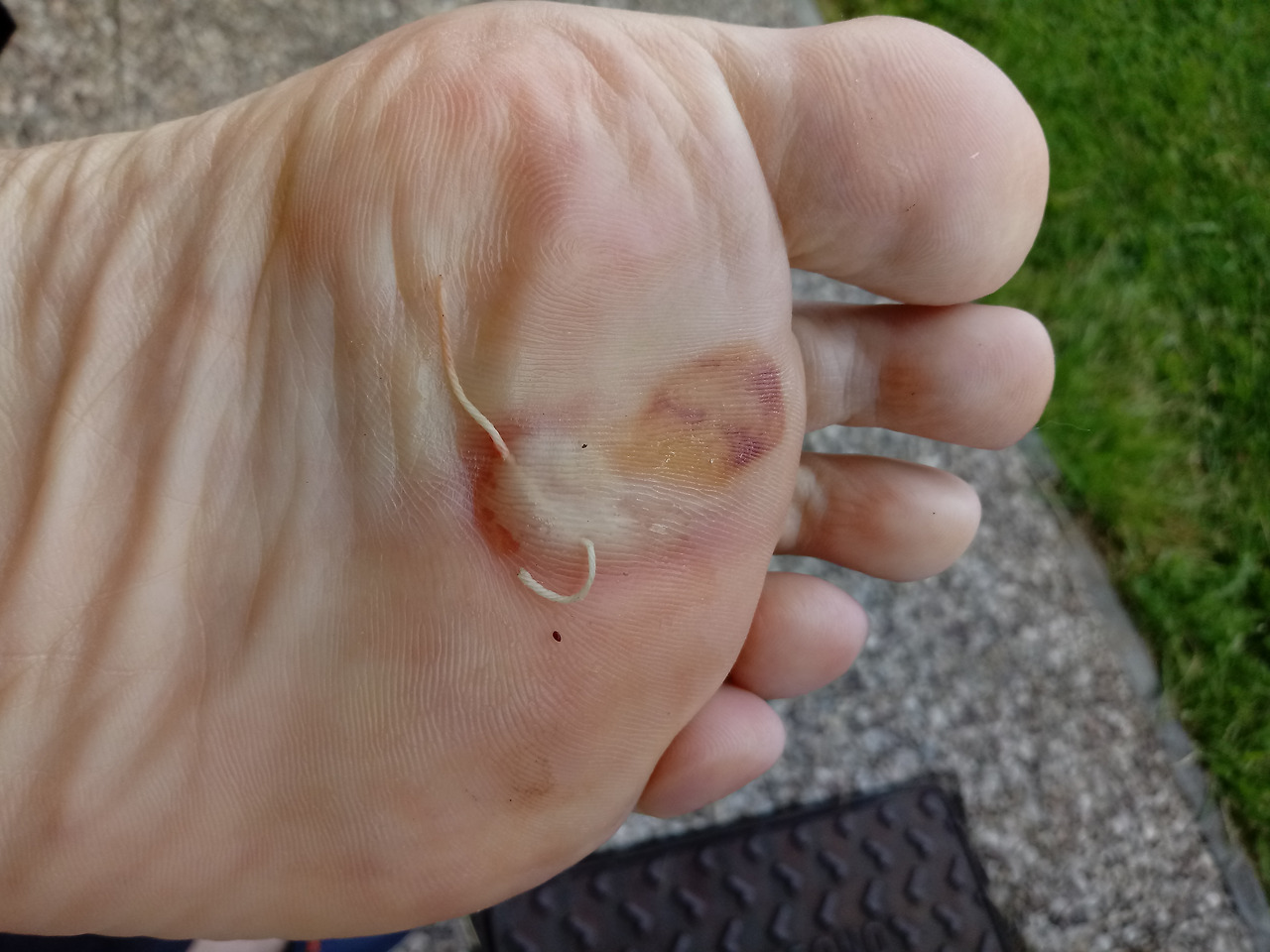 저녁을 먹고 왼쪽 발바닥을 살펴보았다. 물집이 생겼고 하던 방식대로 명주실을 물집에 넣었다. 저녁거리를 같이 사러 갔던 체코 여성이 자기 구급약품이 있다며 도와주겠다고 한다. 나는 웃으면서 나도 구급약품이 있고 이게 한국군인 스타일이라며 아프지 않으니 괜찮다고 말했다.