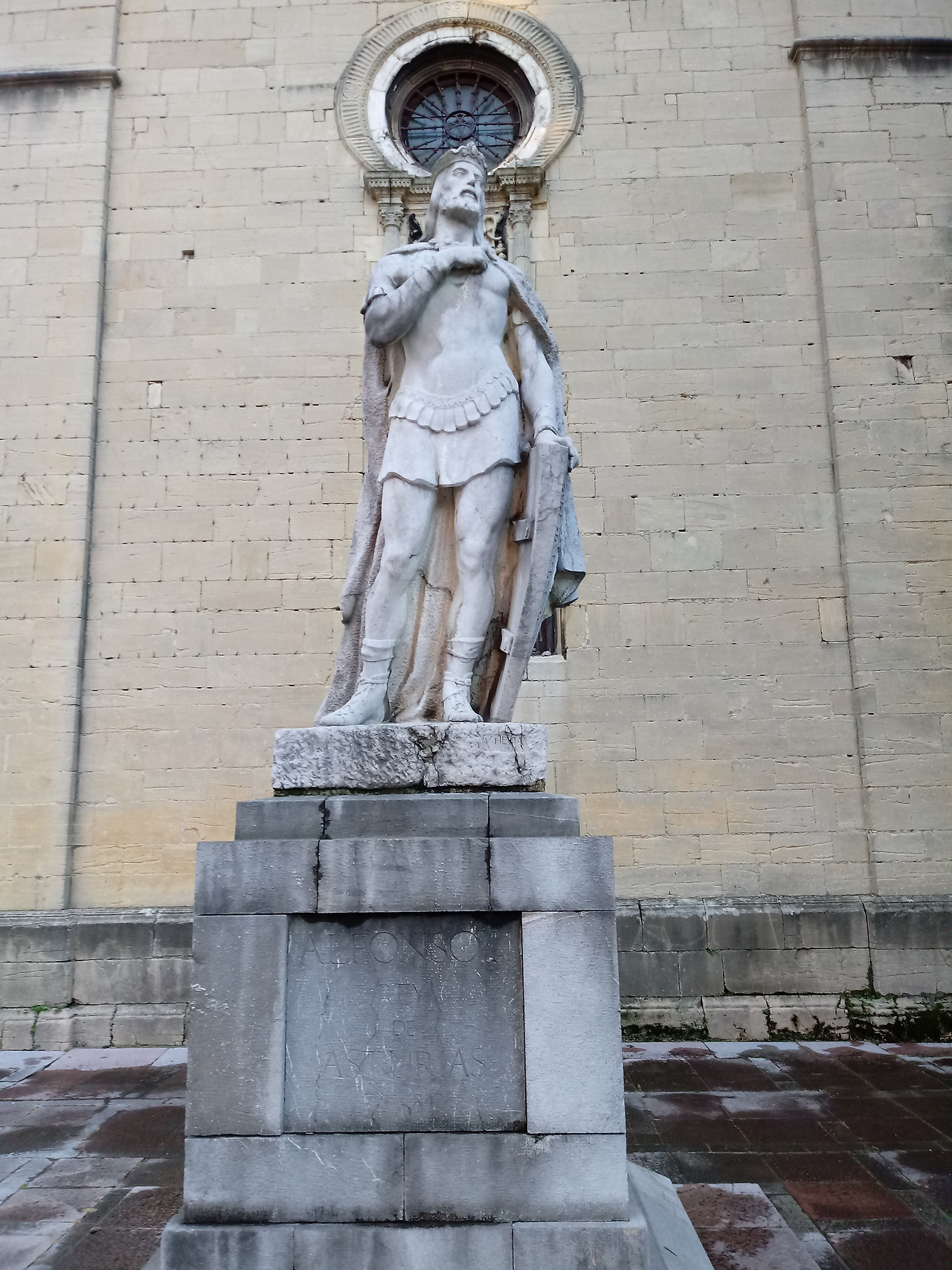 오비에도 알베를 나와서 대성당 앞에 섰다. 대성당에서 왼쪽으로 돌면 프리미티보 순례길이 시작된다. 그 앞에는 프리미티보 순례길을 개척한 알폰소 2세의 동상이 있다.