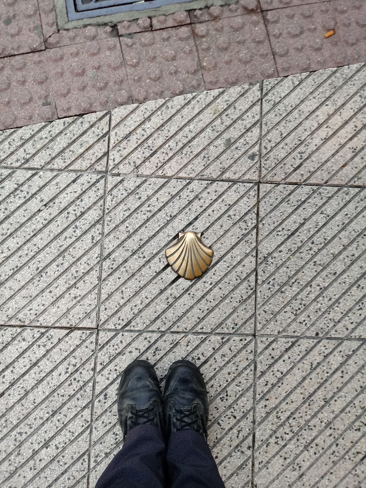 도심지라서 그런지 노란색 화살표는 없었다. 대신 바닥에 청동으로 된 조개가 순례자들의 안내 역할을 하고 있었다. 복잡한 시내를 통과하던 때 건너편 길을 걷는 순례자와 눈이 마주쳤다. 얼핏 보기에 동양사람 같아 보였다. 잠시 동안 멀뚱히 쳐다보던 그분이 먼저 “한국분이세요”하며 말을 걸었다. “아~ 네 반갑습니다. 선생님” 산탄데르에서 스님 일행을 만나고 처음 만나는 한국 분이었다.