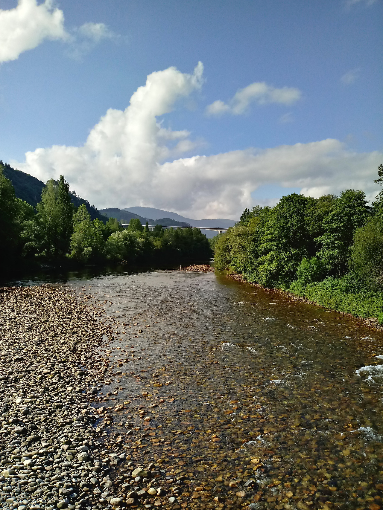 살라스에 도착할 때까지 날씨는 맑았다. 이따금씩 흘러가는 구름은 간간히 그늘을 만들어 주어서 걷기에 좋았다. 도로 옆을 따라 걷는 순례길은 코르네야로 향했다. 마을로 들어가는 입구에는 큰 강이 있었다. 그다지 깊지 않아 보였고 생각 같아서는 들어가서 발도 담그고 시간을 보내고 싶었지만 생각만 한 채 걸었다.