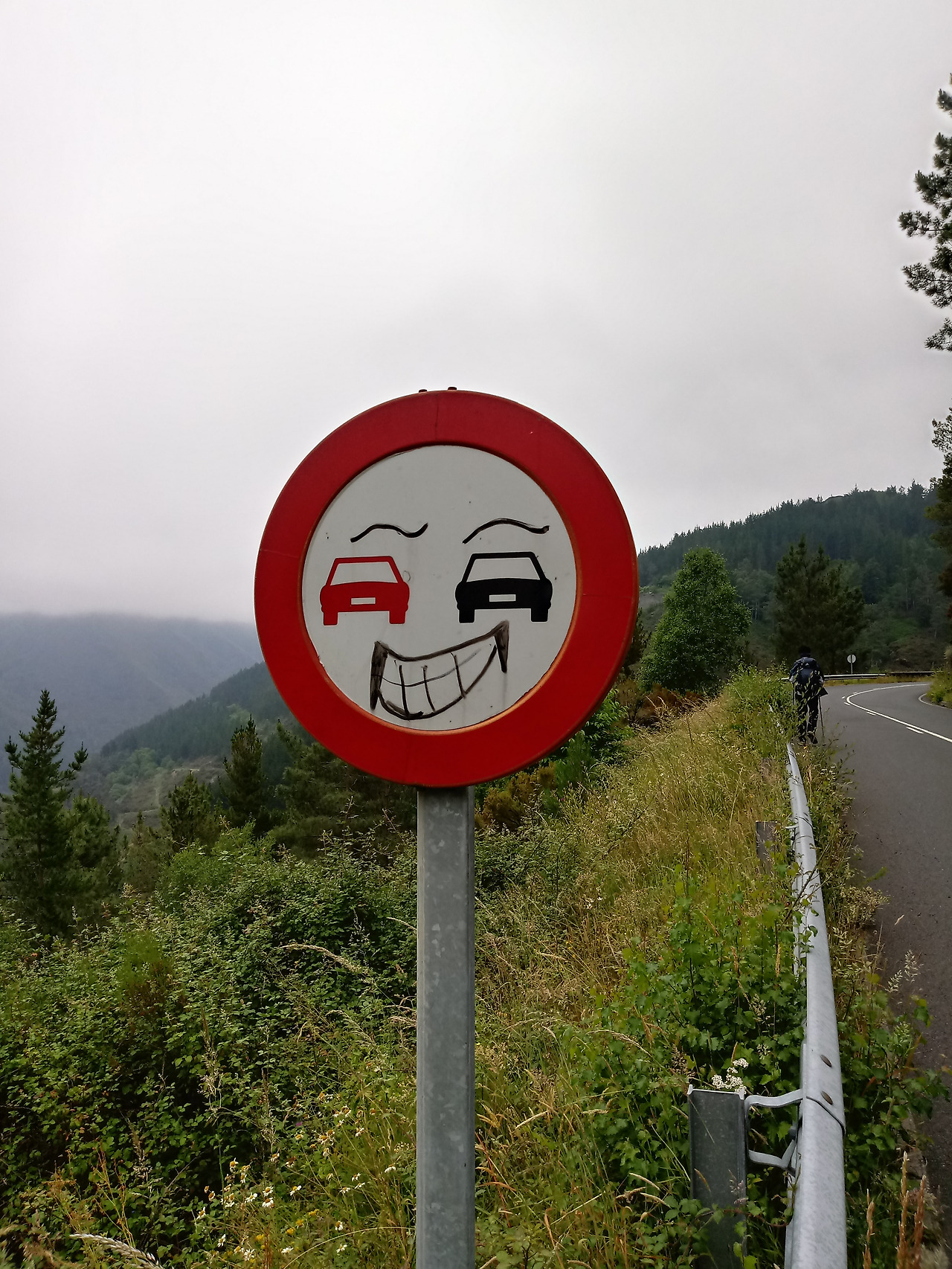 그란다스 데 살리메를 앞두고 길은 양 갈래로 나뉘었다. 산으로 가는 길과 그냥 도로를 따라 걷는 길이었다. 그래도 도로가 편할 것 같아 우리는 도로를 따라 걸었다. 지나가는 차량이 얼마 되지 않아서 길은 한적했다. 그란다스 데 살리메 입구에서 공립알베까지 20여분 걸렸다.