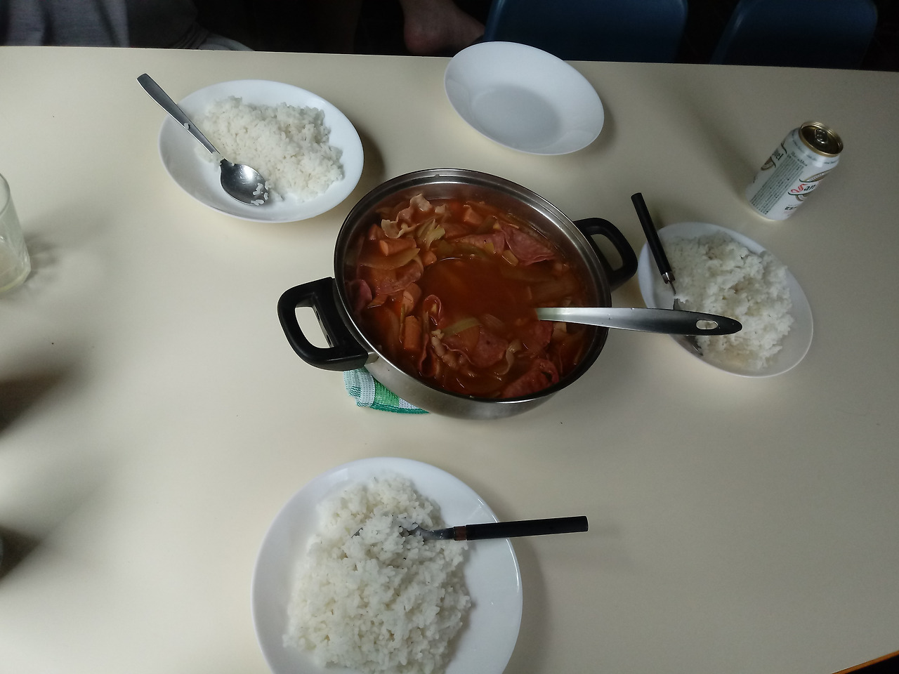 스님은 나와 헤어진 뒤 히온까지 갔다고 했다. 거기서 여성분은 다리가 아파서 계속 북쪽 길로 갔고 자신은 버스를 타고 오비에도로 와서 오늘 이곳에 왔다고 했다. 사립 알베에 잠자리를 구했고 마을 구경을 하다가 들어왔는데 이렇게 만나니 반갑다고 했다. 나도 걸어온 길 이야기하다가 고추장 이야기를 했더니 자신도 고추장이 있다며 저녁에 부대찌개 먹자고 했다. 셋이서 슈퍼에 가서 그날 저녁거리와 과일과 내일 아침거리를 샀다.