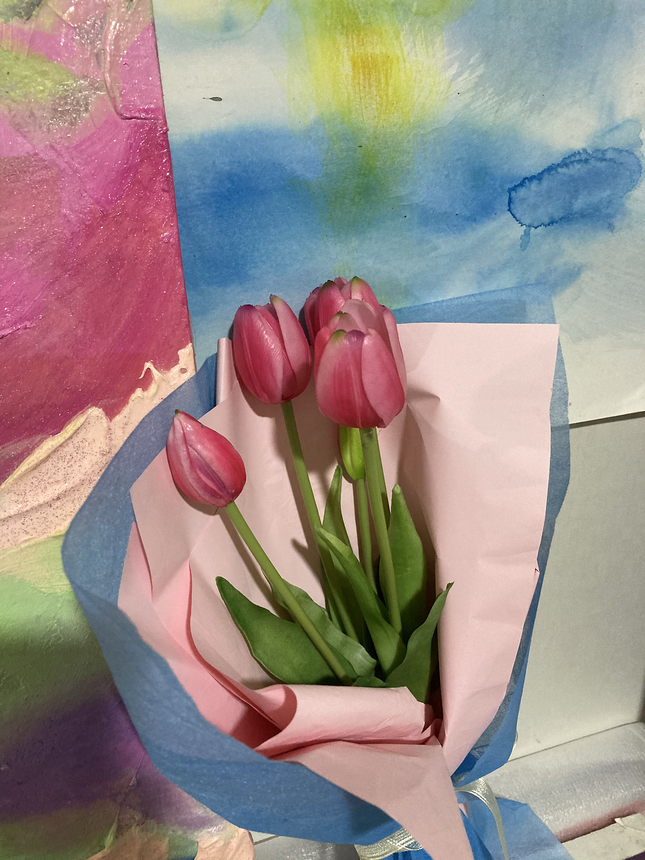 누군가에게 선물을 주는 건 기쁜 일 같다. 오빠한테 생일 선물로 무얼 줄까 고민하다가 여자가 남자에게 꽃을 주는 것 만큼 예쁜 건 없다는 생각이 들어서 꽃을 샀다. 시들지 않았으면 좋겠다고 생각했는데, 우연히 지나간 고속버스터미널에 조화 튤립을 팔길래 바로 사 버렸다.
