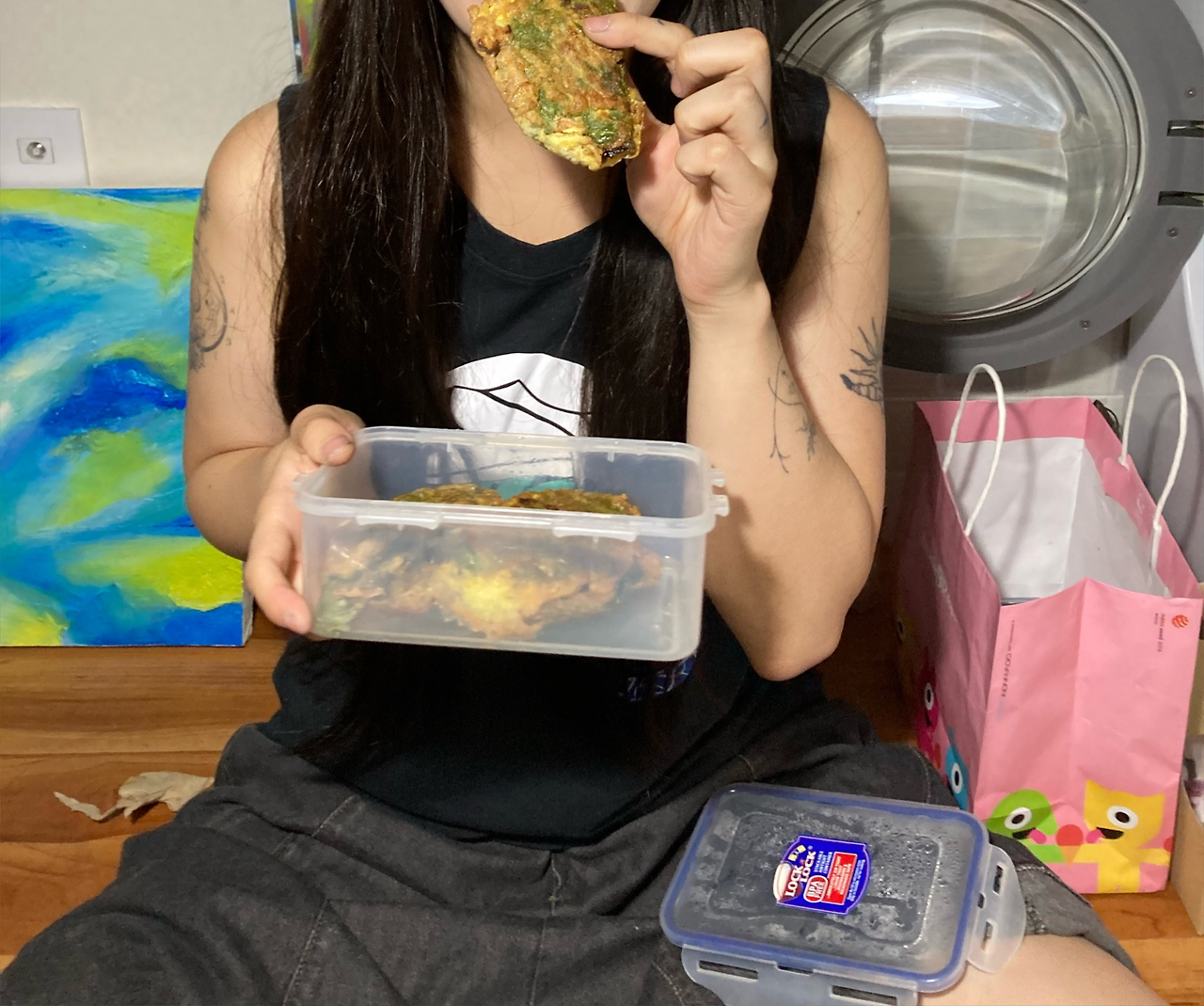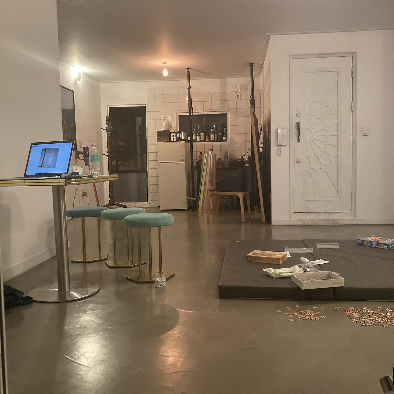 새로운 사람을 새벽에 갑자기 만나서 술을 마시고, 오랜만에 찬오빠에게 연락이 와서 오빠의 친구분과 예술쪽에 대하여 대화를 했으며, 다음날에는 새롭게 만났던 사람의 일하는 곳에 가서 하이볼을 마셨고, 요즘 하이볼에 빠져있는 나는 탄산수와 타면 맛이 없다는 걸 깨달았고, 새벽에 해방촌에서 오토바이를 타다가 내리막길에서 넘어져서 아직도 상처때문에 고생하고 있으며 새로운 강아지를 알았고 오랜만에 누군가를 만났지만 쉽게 깨졌으며, 그래도 많이 좋았던 기억이라서 고마웠고(사실 별 것도 없었지만), 그 다음날 이태원 대현오빠 작업실에서 오랜만에 아무것도 하지 않고 뒹글거렸으며, 길거리에서 오토바이를 타고 있는 찬오빠를 또다시 만나서 다같이 술을 마셨고, 그 다음날에도 엉만이랑 기훈이랑 술마시며 2년 전 우리를 추억하고.. 순영이와 타투를 하면서 파리를 그려넣고(프랑스 파리 말고 벌래 파리), 진짜 좋은 추억이었다. 이 짧은 일주일이.
