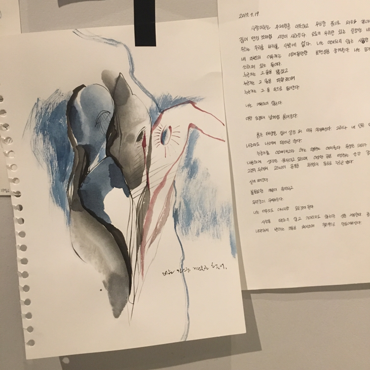 제 그림과 글은 제 삶을 모르시는 분들께는 조금 어려울 수도 있어요. 하지만 저는 그림 속 감정을 믿어요. 글은 그 때의 감정과 기억을 구체적으로 저장해 놓는다면 그림은 그 때의 포괄적인 감정의 느낌 자체를 추상적이건 구상적이건 담아내는 힘을 가지고 있다고 믿어요. 그래서 설명보다는 곧장 느껴지는 그림에서 머물러 있곤 하죠. 그 감정과 사람들의 이야기를 함께 나누어보는 시간이 되었으면 좋겠어요. 무료 드로잉 체험을 하실 수 있으니 언제든 방문해 주세요^^ 저는 평일에만 갤러리에 있을 예정입니다! 오시기 전에 미리 연락 주세요.
