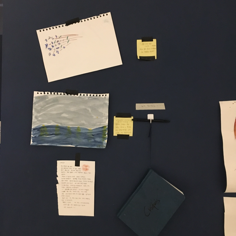 개인전을 하게 되어 갤러리의 한 공간을 방 처럼 꾸며놓았어요. 그 방에 있는 작품들의 주제는 <기억>입니다. 항상 그 곳에서 글을 쓰고 그림을 그렸어요. 책도 읽고 영화를 보며 홀로 불안해 하기도 하고 슬퍼 하기도 하고 행복해 하기도 했기에 애착이 강한 공간이었습니다. 타인들과 모여서 함께 대화를 하기도 하고 애정어린 눈빛으로 바라만 보기도 했어요. 그 공간의 감정을 사람들과 공유하고 싶어 이곳에서 함께 그림을 그리면 어떨까 생각하였습니다.