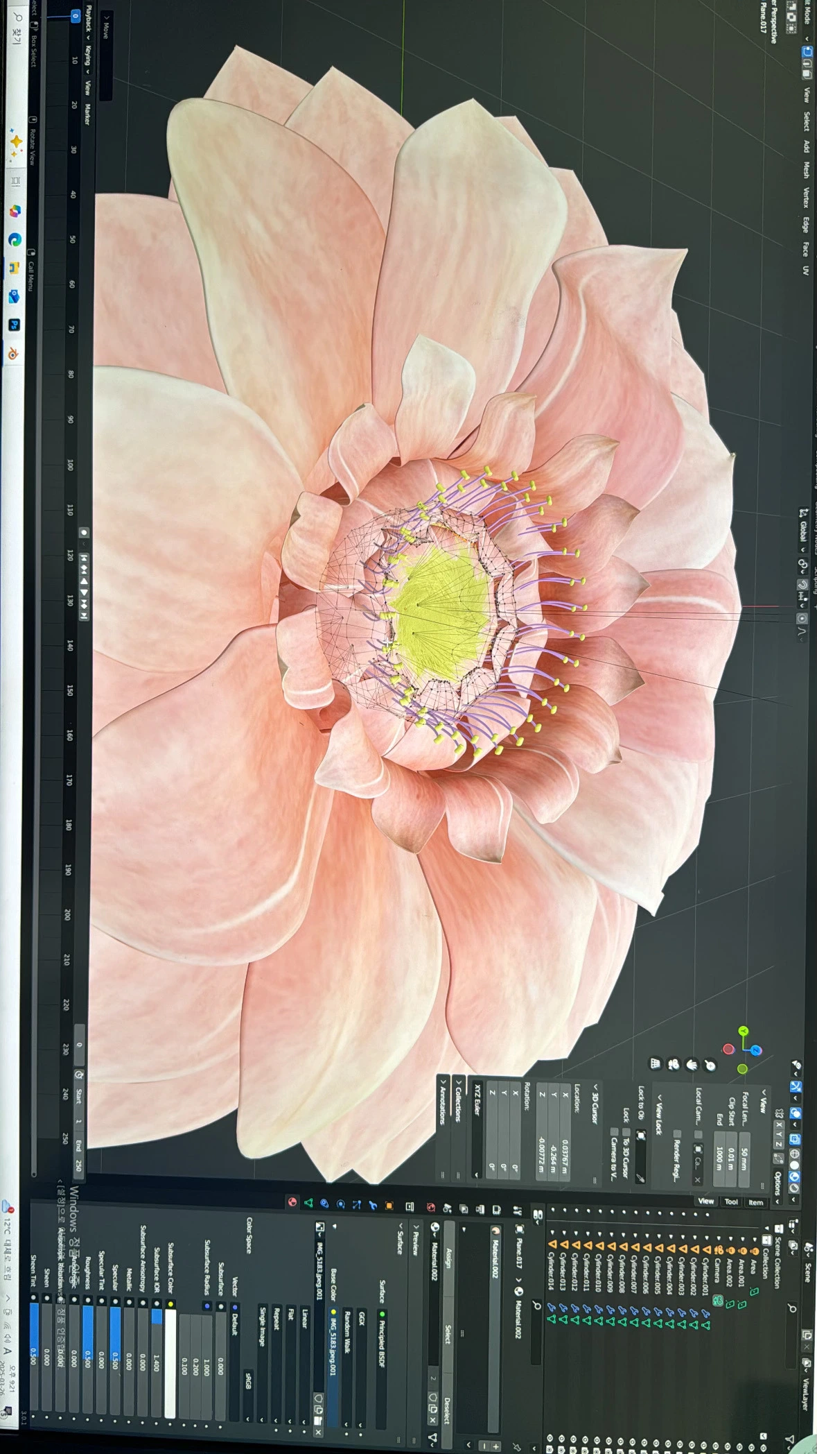 남자 친구가 준 꽃을 렌더링 중이다. 맵핑을 하고 하는 중인데, 아직 다듬을 것들이 너무 많아서 형태적으로나 아직 완성되려면 한참이나 멀었는데 이 수작업이 꽤나 재밌다.