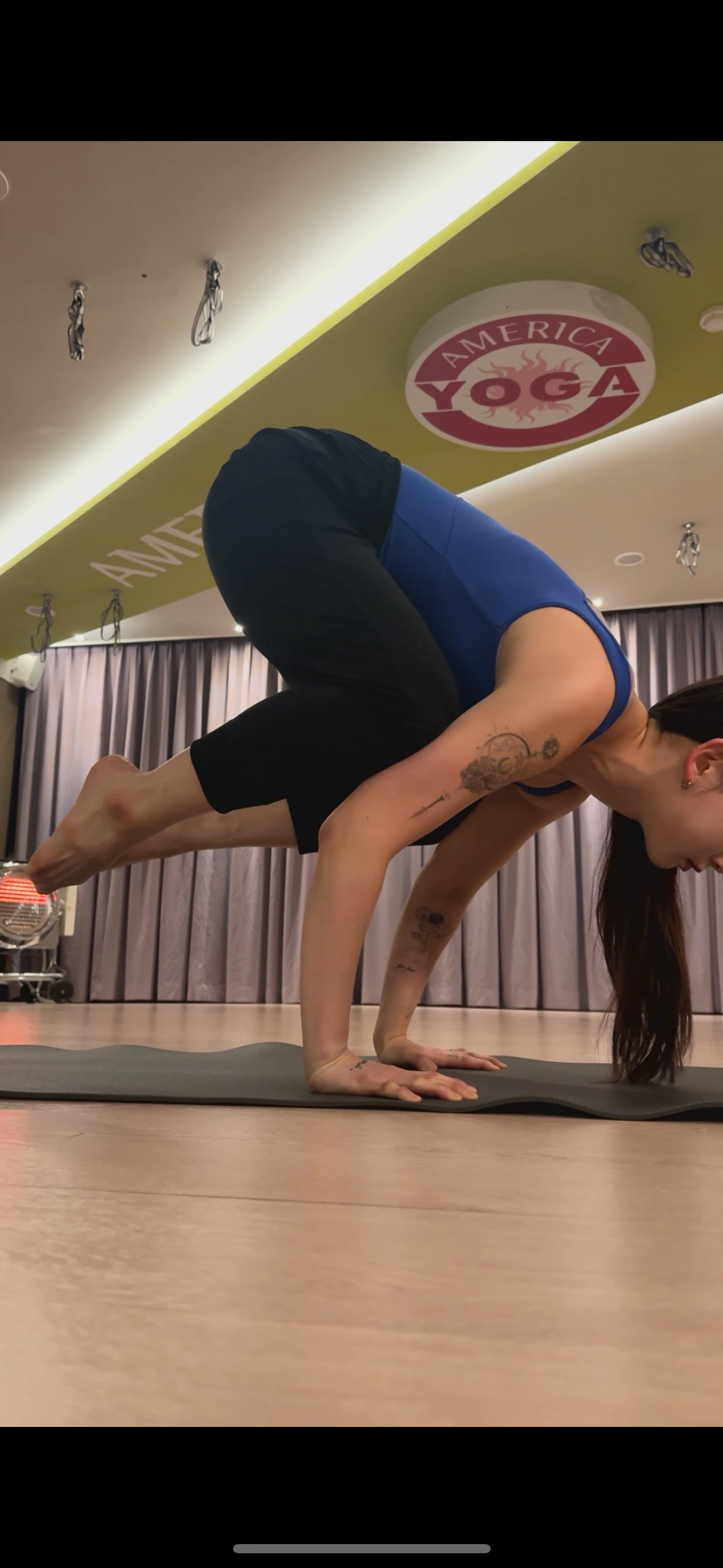 중심이 앞으로 너무 빠지지 않게 핸드스탠딩 할 때 손가락에 힘 주기.