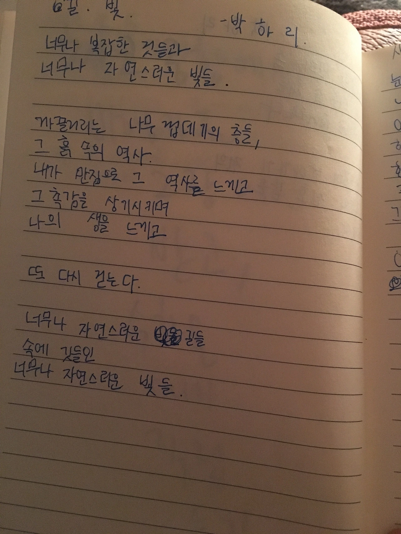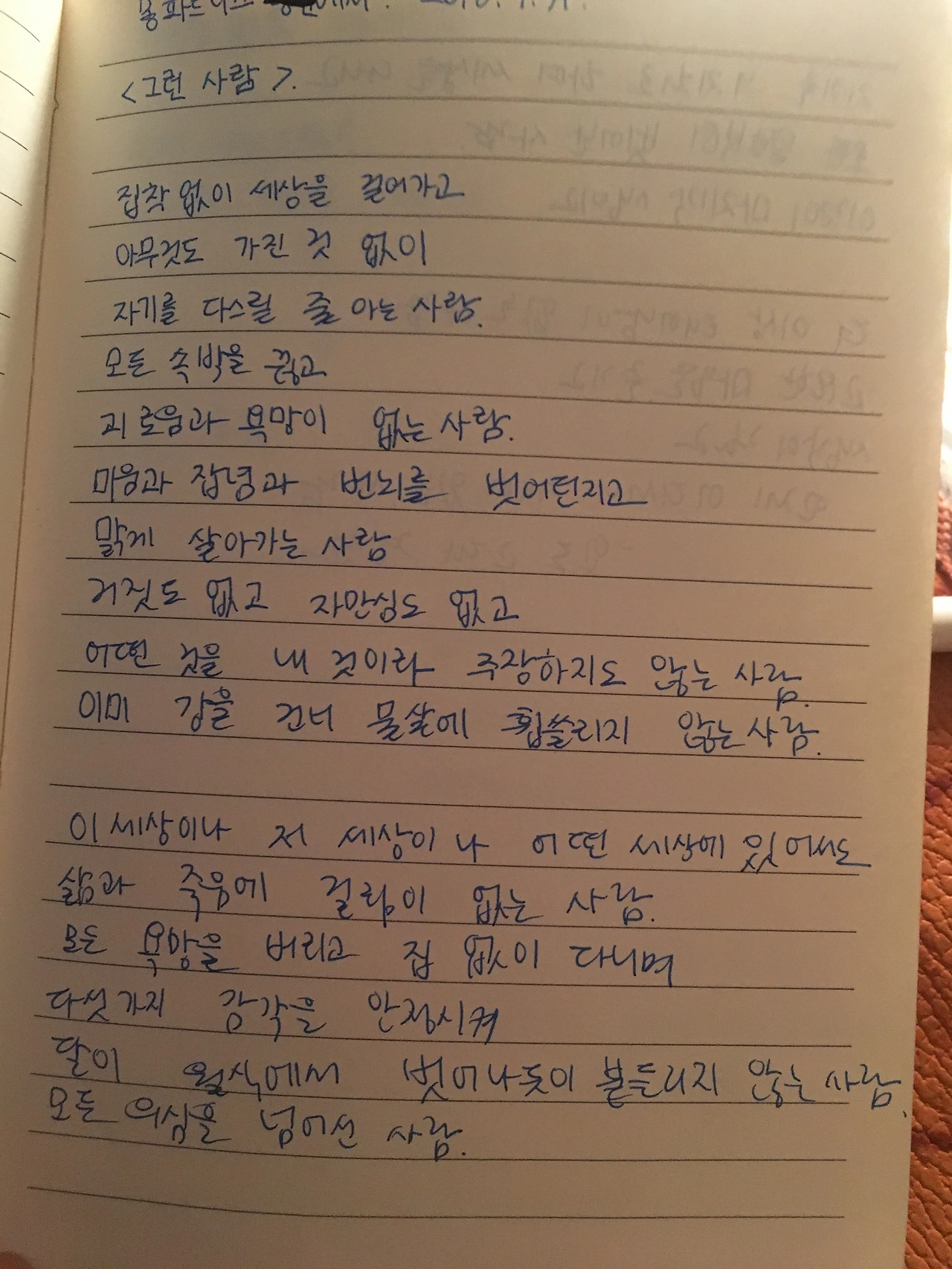 그리고 심신 안정을 위하여 예전에 내가 노트에 적어놓은 메모들을 보았다.