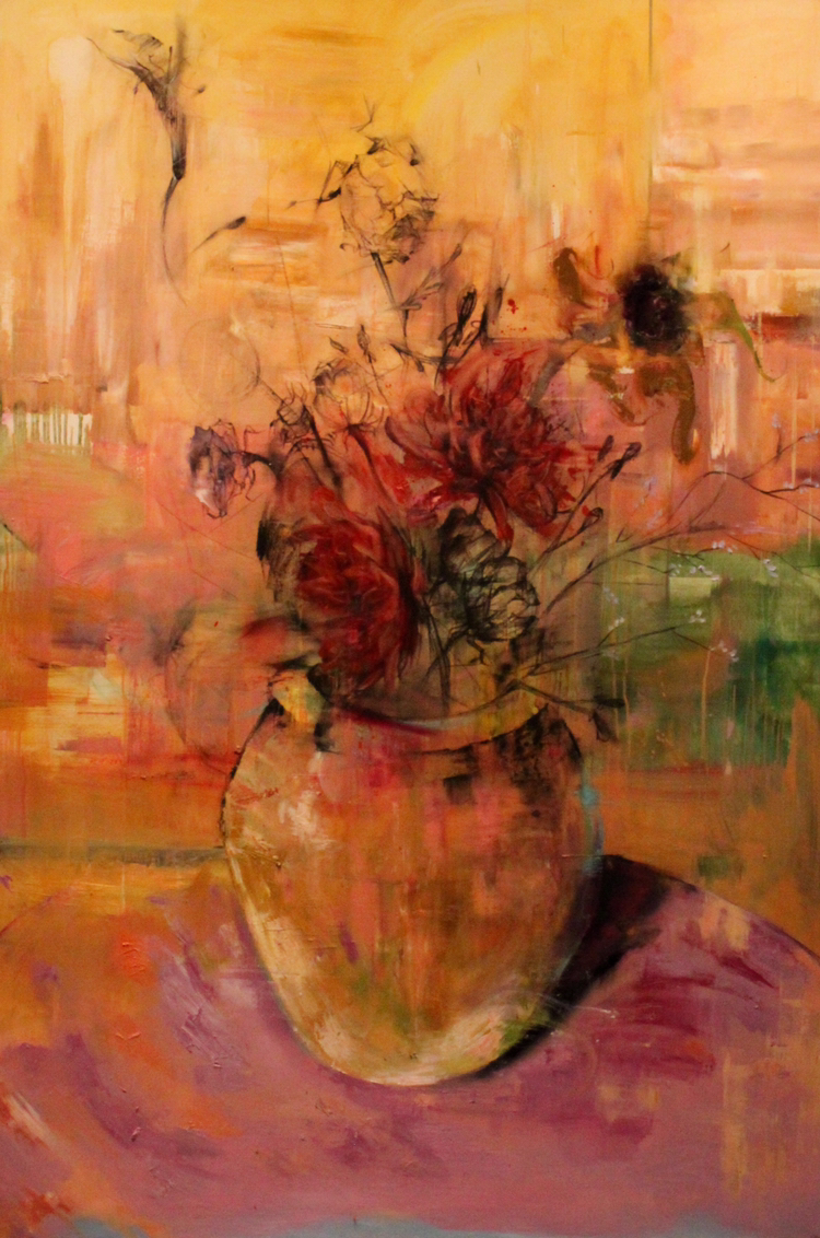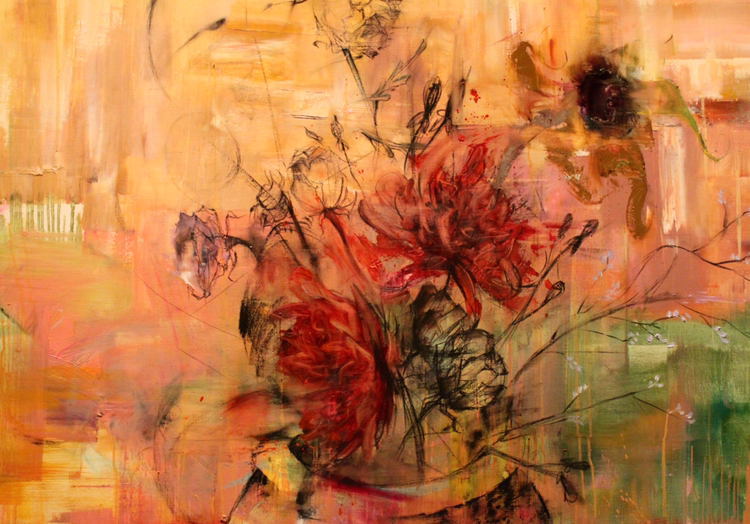 이전 그의 작품을 보면 ‘의도성’이 보인다. 역동적인 풀의 형태는 ‘구상’이라는 것에서 완연히 자유로워 보이지는 않는다. 조금은 경직돼 보이고 자유를 갈망하는 어떠한 움직임의 형태를 보는 것 같다. 하지만 그가 작업을 진행할수록 이러한 의도성이 서서히 줄어들고 있다는 것을 볼 수 있다. 이전 작품을 보면 한 배경 안에 차례대로 물감이 레이어 처럼 쌓이고 있다는 것을 볼 수 있다. 즉 배경과 소재가 약간의 괴리를 볼 수 있다는 것이다. 하지만 화병 안에 담긴 꽃들은 마치 동양화 중 채색화의 기법을 보는 듯 배경 속에 스며든다. 스며든 배경 속에서 그는 물감의 ‘결’을 찾고 그 결에 따라서 표현을 해 나간다. 자신이 무엇을 하고 있는지, 어떠한 결과를 향하여 나아가는 지 명확한 지표 대신 그는 우연성에 집중하였다. 하지만 우연성 안에 있는 ‘결’이라는 것은 그의 작업에서 방향을 이끌어 주었다.