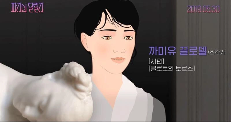 (딜릴리가 로댕의 작업실에서 마음에 드는 작품을 고른다. 그것은 다름아닌 까미유 끌로델의 작품, 슬픈 눈의 그녀는 로댕과 사랑하지만 아내가 있는 로댕은 그녀를 떠나고 말년에 그녀는 정신병원에 갇히게 된다. 그것을 영화로 만든 것이 바로 영화 <까미유 끌로델>이다.)