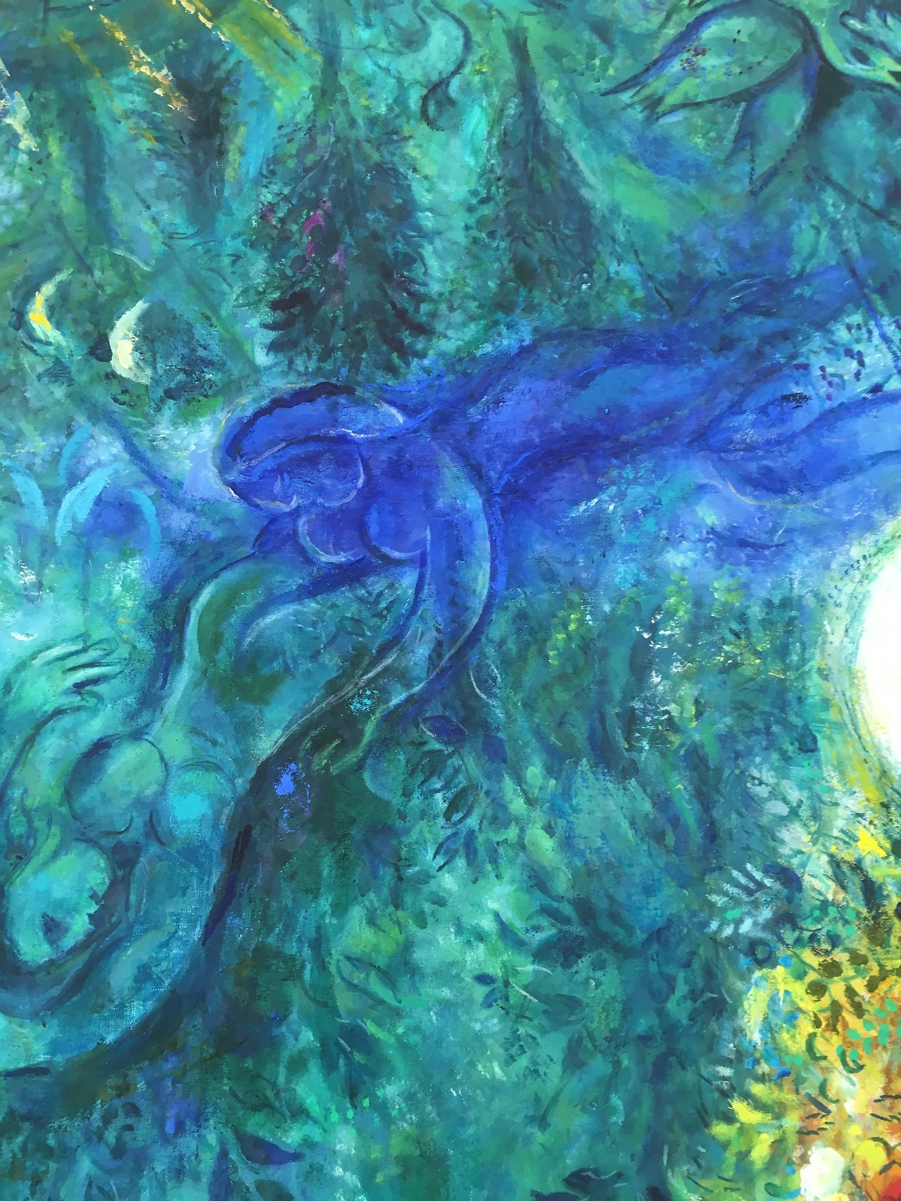 샤갈은 푸른색 계열을 참 잘 쓴다. 오묘하고 신비롭고 꿈과 같은 환상의 색. 실물로 감상할 때가 훨씬 더 많이 와닿는다. 나는 블루가 너무나 좋다.